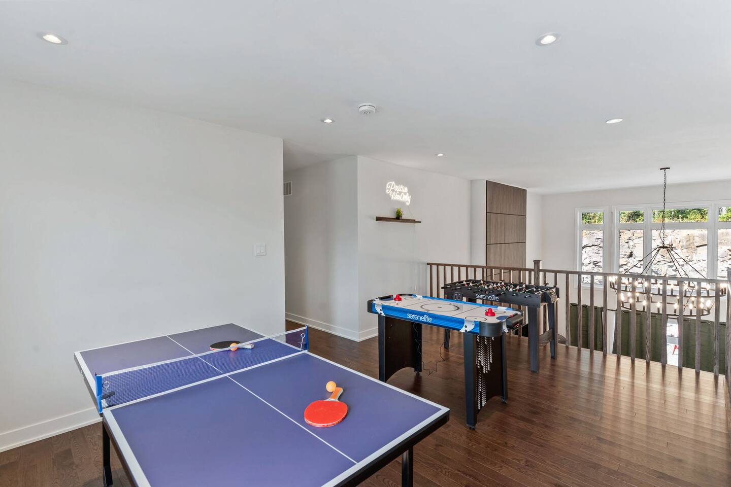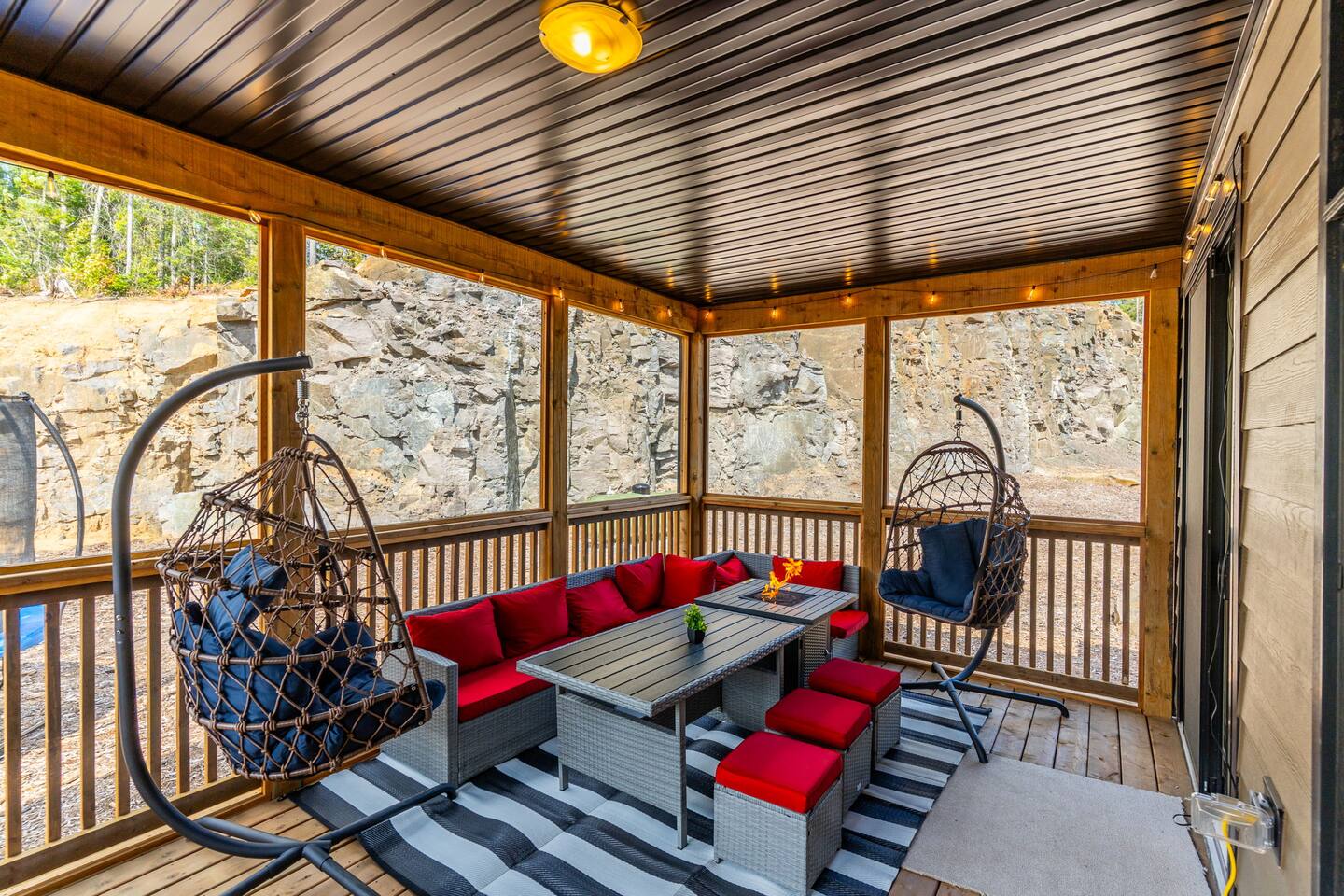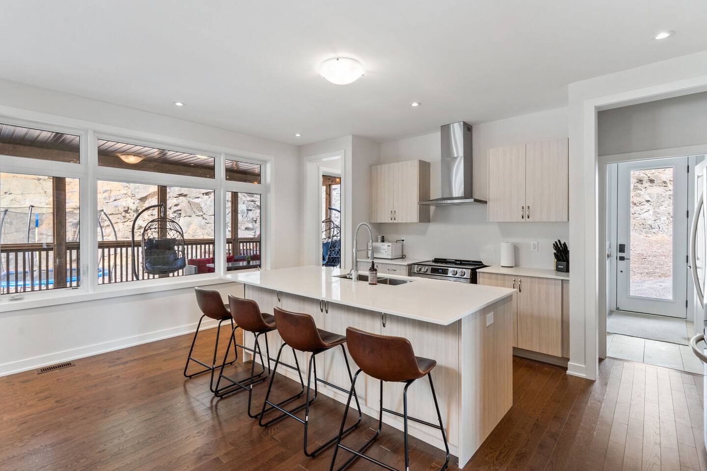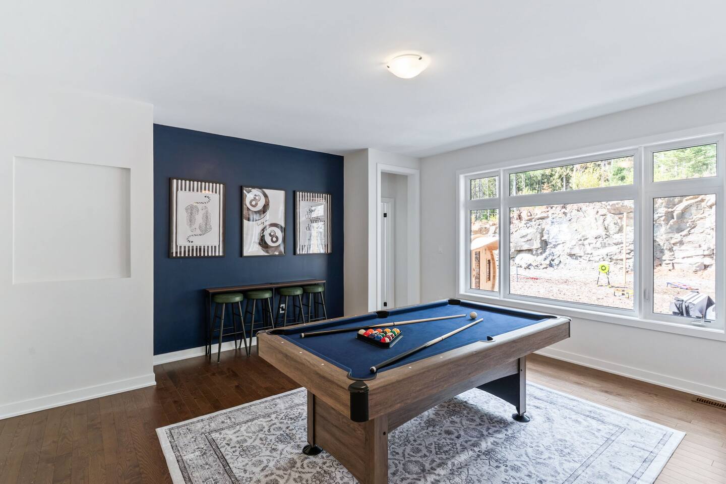 ⭐️PROPERTY HIGHLIGHTS⭐️ ► Modern & Stylish Home – the perfect stay for fun and relaxation! ► Prime LOCATION! ► HOT TUB/ SAUNA / FIREPIT/POOL TABLE ► Family Board Games ► Sleeps 10 adults ► Fast WIFI & 75 INCH Smart TV ► Comfortable Memory Foam mattresses ► Dedicated work station ⭐️BACKYARD ►The backyard is your personal oasis, designed for relaxation and fun. ✔Unwind in the 4-seater hot tub, perfect for relaxing after a day of adventure. ✔Enjoy outdoor sauna in the woods. As the evening sets in, gather around the cozy fire pit, ideal for warming up and sharing stories under the stars. This backyard is the ultimate space to enjoy nature, relaxation, and quality time with those who matter most. ⭐️LIVING ROOM ► Built in 2024, this cottage features vaulted ceilings and an open-concept design with floor-to-ceiling windows that flood the space with natural light and showcase the serene surroundings. The boutique, cottage-style décor adds a modern touch, making you feel right at home among the pines. Start your day with coffee or tea on the cozy leather sofa, surrounded by soft pillows and plush blankets, or unwind with a good book in the oversized basket chair, perfect for sharing with a partner. ✔ 75 inch 4k Ultra HD Smart TV ⭐️KITCHEN & DINING ► The kitchen area is equipped with numerous cooking appliances. Everything you need to make yourself feel at home. If you want to take a break from the city hustle, then this is the place for you. Have some breakfast at the patio or indulge in a family dinner on the dining table. ⭐️MASTER BEDROOM ► Enjoy stunning views through high-ceiling windows that look out into the woods, where you can watch the sunrise filtering through the pines in complete privacy. Step onto the private patio to savor the fresh morning air from a cozy couch, or head to the backyard for a peaceful soak in the hot tub. Sleeps 2, The master bedroom offers: ✔ A luxurious KING-size ENDY mattress, dressed in soft cotton linens and a plush goose-down duvet. You’ll love every moment of cottage time here! ⭐️MASTER BATHROOM ► The apartment features a spacious full bathroom with a free standing tub, standing shower, and a makeup vanity, stocked with all necessities and essential toiletries, so you don't need to bring your own. ⭐️BEDROOM 2 ►The bedroom offers a cozy QUEEN-size bed, thoughtfully designed for a restful and rejuvenating sleep experience. This comfortable bed is dressed with soft, high-quality linens, smooth sheets, and supportive pillows, all carefully chosen to help you relax deeply and wake up refreshed. Sleeps 2 ⭐️BATHROOM 2 ►The apartment features a spacious full bathroom stocked with all necessities and essential toiletries, so you don't need to bring your own. ⭐️BEDROOM 3 ►The bedroom offers a cozy QUEEN-size bed, thoughtfully designed for a restful and rejuvenating sleep experience. This comfortable bed is dressed with soft, high-quality linens, smooth sheets, and supportive pillows, all carefully chosen to help you relax deeply and wake up refreshed. Sleeps 2 ⭐️BEDROOM 4 This spacious bedroom is perfect for families or groups, featuring two bunk beds that each sleep up to three people. With a full-size bed on the bottom and a twin on top, each bunk comfortably accommodates both kids and adults. The room is bright, cozy, and thoughtfully designed to provide a fun yet restful space for guests of all ages. It’s an ideal setup for larger families or groups traveling together. Sleeps 6 ⭐️GAME ROOM ►Welcome to the ultimate gaming room with pool table, ping pong and foosball—designed for fun, relaxation, and connection! This inviting space features offers: ✔ Foosball table for some friendly competition ✔Pool Table for entertainment ✔Ping Pong for entertainment ⭐️MUSKOKA ROOM Step into the serene Muskoka Room, a perfect retreat to relax and enjoy nature’s beauty. ✔Sink into the spacious couch, ideal for sipping your morning coffee or unwinding with drinks at night. ✔Stay cozy with the electric fire pit, providing warmth and ambiance, while ferry lights add a magical glow to the space. ✔A 4-burner BBQ is ready for you to cook up your favorite meals, making this room the perfect blend of comfort, charm, and outdoor relaxation for an unforgettable stay. ⭐️THINGS TO DO⭐️ ⭐️Winter Activities: Embrace the winter season with skiing, snowboarding, snowshoeing, and snowmobiling, all just 10 minutes from Hidden Valley Ski Slopes & Snowboard Area. ⭐️Spring, Summer, and Fall Activities: Discover a variety of outdoor adventures including: ✔biking ✔hiking ✔rock climbing ✔golf ✔horseback riding ✔Visits to local microbreweries All within 10 minutes. Keep an eye out for wildlife sightings along the way! Explore nearby national parks such as: ✔Limberlost Reserve ✔Arrowhead Park ✔ Algonquin Park It just 15-20 minutes away. Conveniently located, Deerhurst Resort and Dorset are only 10 minutes away, with Huntsville just 15 minutes from your door. For water lovers, enjoy canoeing and motorized water sports with rentals available just 10 minutes away. Seasonal farmers, markets and local events are also within reach, adding charm to your stay!