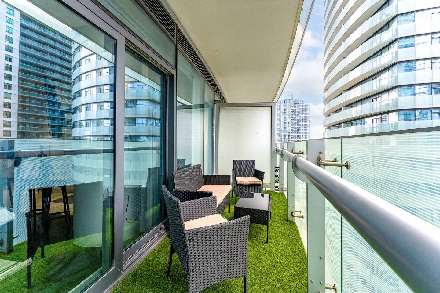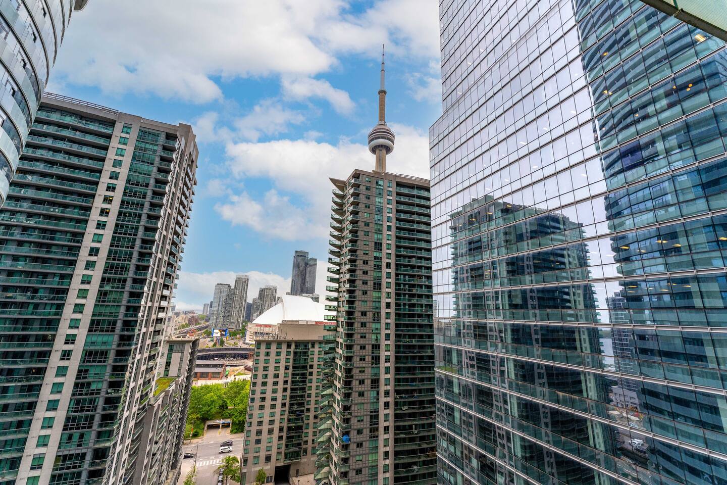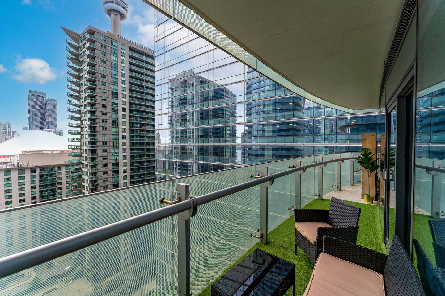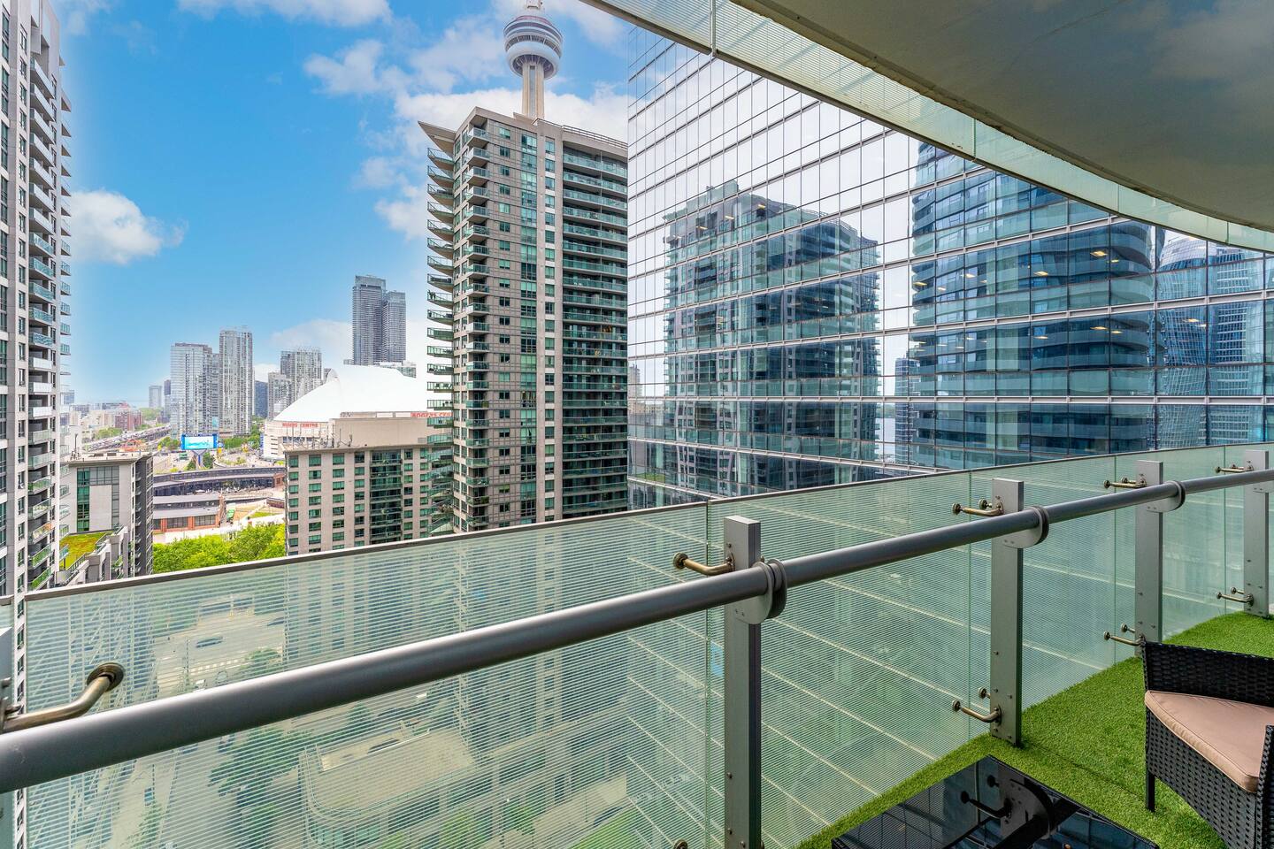 ✤ Location is everything! Within walking distance from our building you can go to the CN tower, Ripley's, arcade, restaurants and lakeshore for lake view walks - all within 5 minute walk from the building. Our building is also accessible to the Gardiner Expressway for easy access to the highway! The entire condo includes: ✔ Two premium memory foam queen bed ✔ One Queen Sofa Bed ✔ Natural light in all parts of the unit with City & Lake Views ✔ Catch beautiful sunset moments of the city. ✔ Fully stocked kitchen with Toaster, microwave and all kitchen essentials for fun and seamless cooking nights. ✔ Spacious living room with cozy furniture, best for your group to relax and wind down. ✔ 55” Smart TV available for your own convenience. ✔ Unlimited high-speed internet. ✔ Washer and dryer included in main closet. ‼️IMPORTANT NOTE FOR 01 WEEK STAY OR LONGER‼️ ➦Toilet paper, garbage bags and basic toiletries will be provided for the guests at the beginning of the stay. It will then be the guest's responsibility to provide for these for the remainder of their stay **Amenities are only accessible for guest staying over 28 days as per the building policy** ** the elevators might be slower than usual due to other Airbnbs in the building**