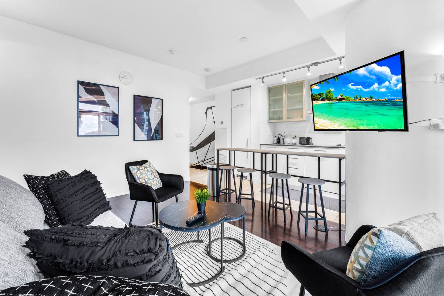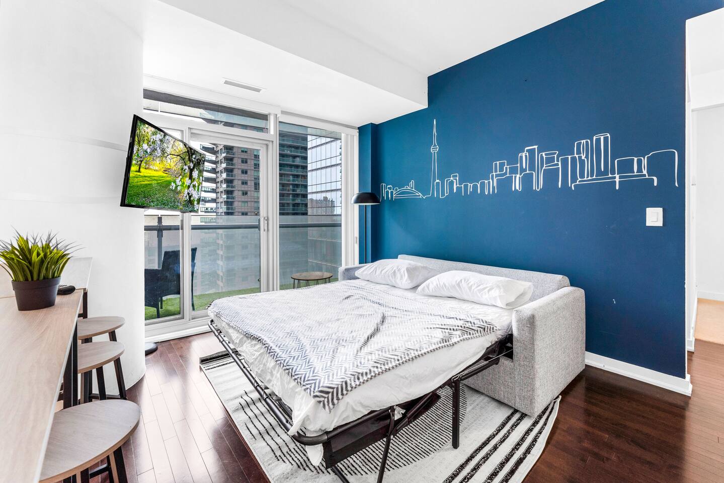 Welcome to your stylish home away from home! This bright and modern 2-bedroom condo offers the perfect blend of comfort and city living. Located in the heart of Ontario, you’ll enjoy stunning skyline views right from your living room or balcony. Whether you're visiting for business or pleasure, this space offers the perfect launch pad for exploring everything the city has to offer — just steps from public transit, shops, and restaurants. Book your stay now and experience Ontario in style!
