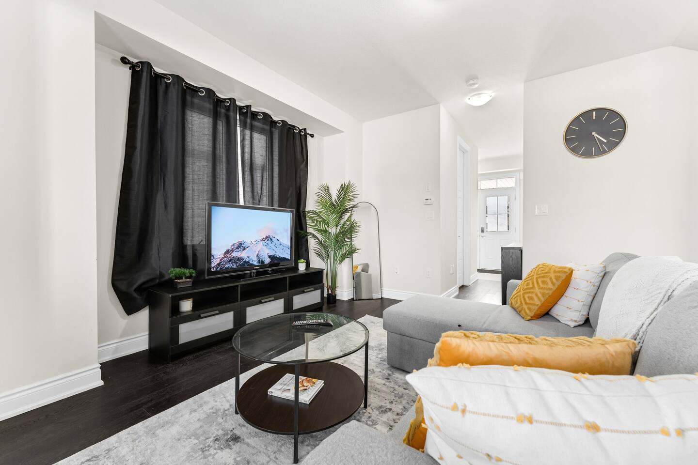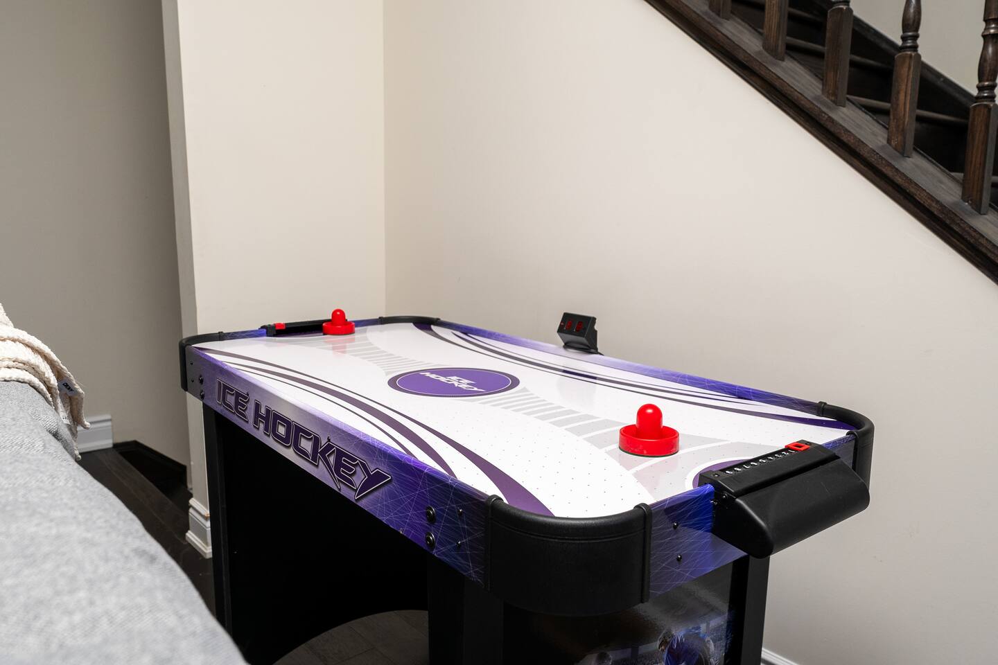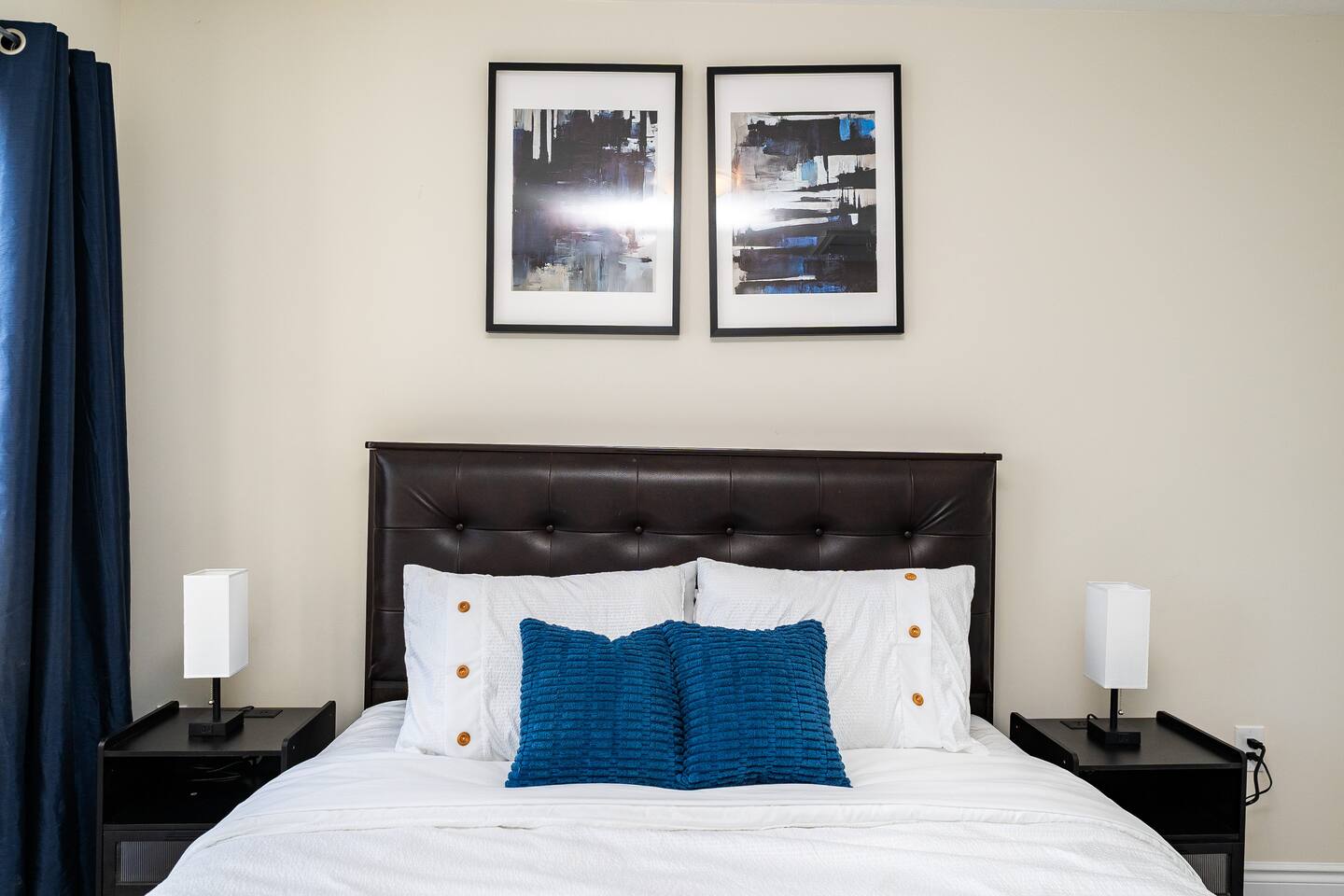 ⭐️PROPERTY HIGHLIGHTS⭐️ ► Modern & Stylish Home – the perfect stay for fun and relaxation! ► Prime LOCATION! 10 mins to Niagara Falls ► Air Hockey ► Family Board Games ► Complementary: Coffee, Tea ► Sleeps 6 adults & 1 baby/toddler ► Fast WIFI & Fire TV ► Comfortable Memory Foam mattresses ► Dedicated work station and much much more! ⭐️ ‼️IMPORTANT‼️ ►There's 2 parking spots on the driveway. You may find additional parking on the street. ► The Living & dining room, kitchen are located on the main floor. ► The 3 bedroom are located on the second floor. ⭐️ LIVING ROOM ⭐️ So cozy, with lots of natural light, oversized comfy couch, overlooking beautiful bay windows. ✔ Oversized comfortable Sofa ✔ Throw blanket ✔ Beautiful Bay windows with lots of natural light ✔ 42” Fire TV ✔ Coffee Table ✔ Board games & Books ⭐️ DINING AREA ⭐️ ✔ Seats 6 people + 3 people bar table in the kitchen ⭐️ KITCHEN ⭐️ It is fully equipped and stocked with everything you need for the chef in the group. ✔ Bar Table seating 3 people ✔ Fully equipped ✔ Complementary coffee, tea ✔ Spice rack to cook chef meals ✔ Toddler/Baby bowls/plates ✔ Cooking essentials ✔ Microwave ✔ Stove ✔ Oven ✔ Refrigerator/Freezer ✔ Kettle ✔ Toaster ✔ Glasses ✔ Silverware ✔ Pots & Pans and much much more!! ⭐️ Games Room ⭐️ ➦Our games space is situated in the living room. ✔ Air Hockey ✔ Board Games ⭐️ MASTER KING BEDROOM 1 ⭐️ Sleeps 2, this bedroom features a luxurious king-sized bed designed to ensure a restful night's sleep. The room is thoughtfully furnished to provide a serene and comfortable environment, allowing you to unwind and rejuvenate during your stay. ✔ Comfortable Memory Foam Mattress ✔ King–Size Bed with Pillows, Linens, and Sheets ✔ Room darkening shades ✔ Closet with Hangers and Shelf ✔ Pack n' Play ✔ Side tables with night lamps ⭐️ MASTER QUEEN BEDROOM 2 ⭐️ Sleeps 2, this bedroom features a luxurious queen-sized bed designed to ensure a restful night's sleep. The room is thoughtfully furnished to provide a serene and comfortable environment. The green-themed interior creates a calming atmosphere, promoting relaxation and tranquility. ✔ Comfortable Memory Foam Mattress ✔ Queen–Size Bed with Pillows, Linens, and Sheets ✔ Room darkening shades ✔ Closet with Hangers and Shelf ✔ Side tables with night lamps ⭐️ QUEEN BEDROOM 3 ⭐️ Sleeps 2, this bedroom features a luxurious queen-sized bed designed to ensure a restful night's sleep. The blue-themed interior promotes relaxation and tranquility. ✔ Comfortable Memory Foam Mattress ✔ Queen-sized Bed with Pillows, Linens, and Sheets ✔ Side Table ✔ Closet with Hangers and Shelf ⭐️ BATHROOM ⭐️ The apartment features a spacious 1 full bathroom stocked with all necessities and essential toiletries including: ✔ Clawfoot Bathtub with a Shower ✔ Shampoo/Conditioner/Body Wash ✔ Hand soap ✔ Mirror ✔ Towel - body & face ✔ Essential Toiletries ⭐️ LAUNDRY ⭐️ ✔ In unit washer & dryer free for you to use ✔ Laundry Detergent ✔ Iron & Ironing board ✔ Hand Held Vacuum ✔ Broom & dust pan