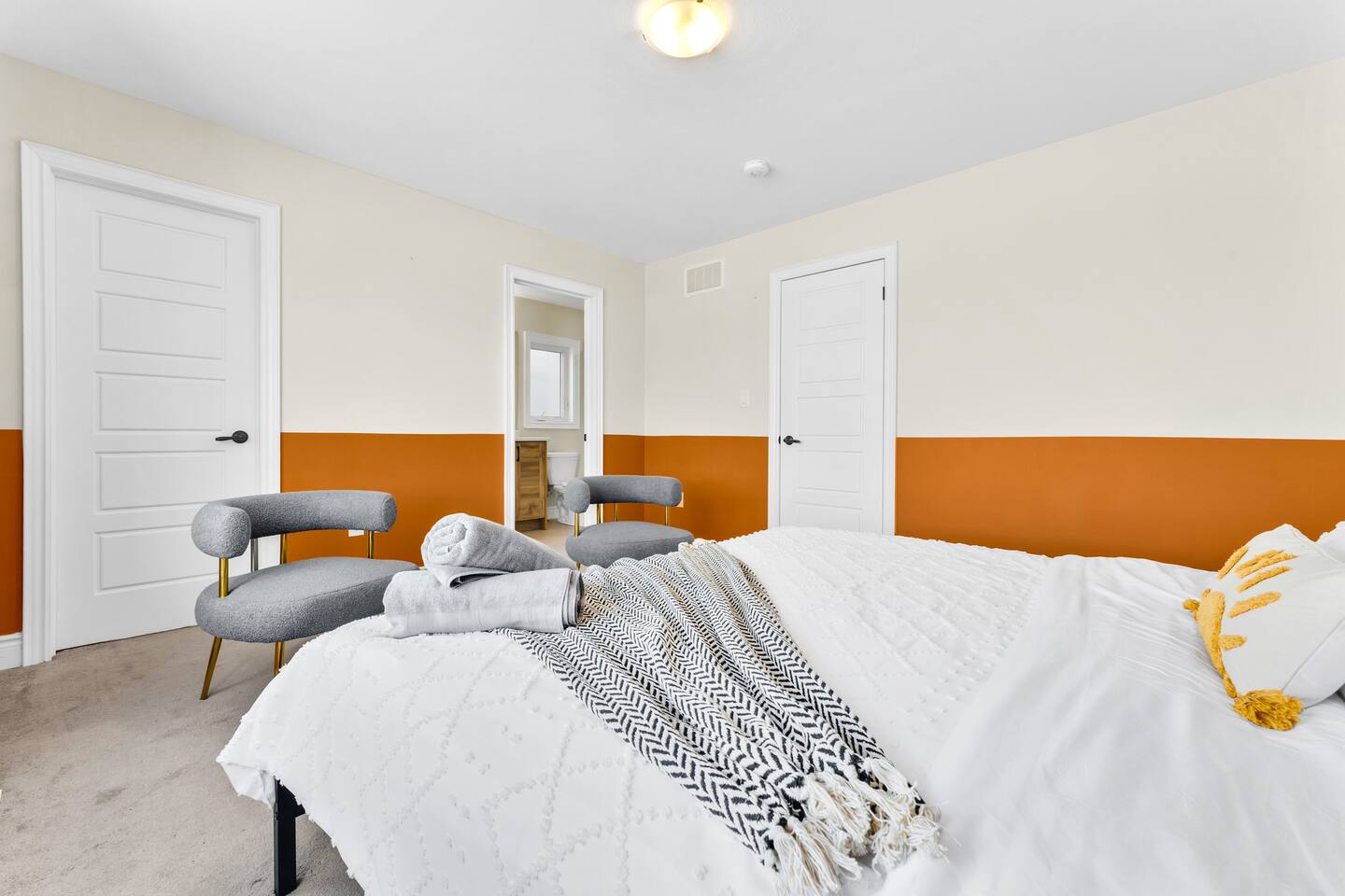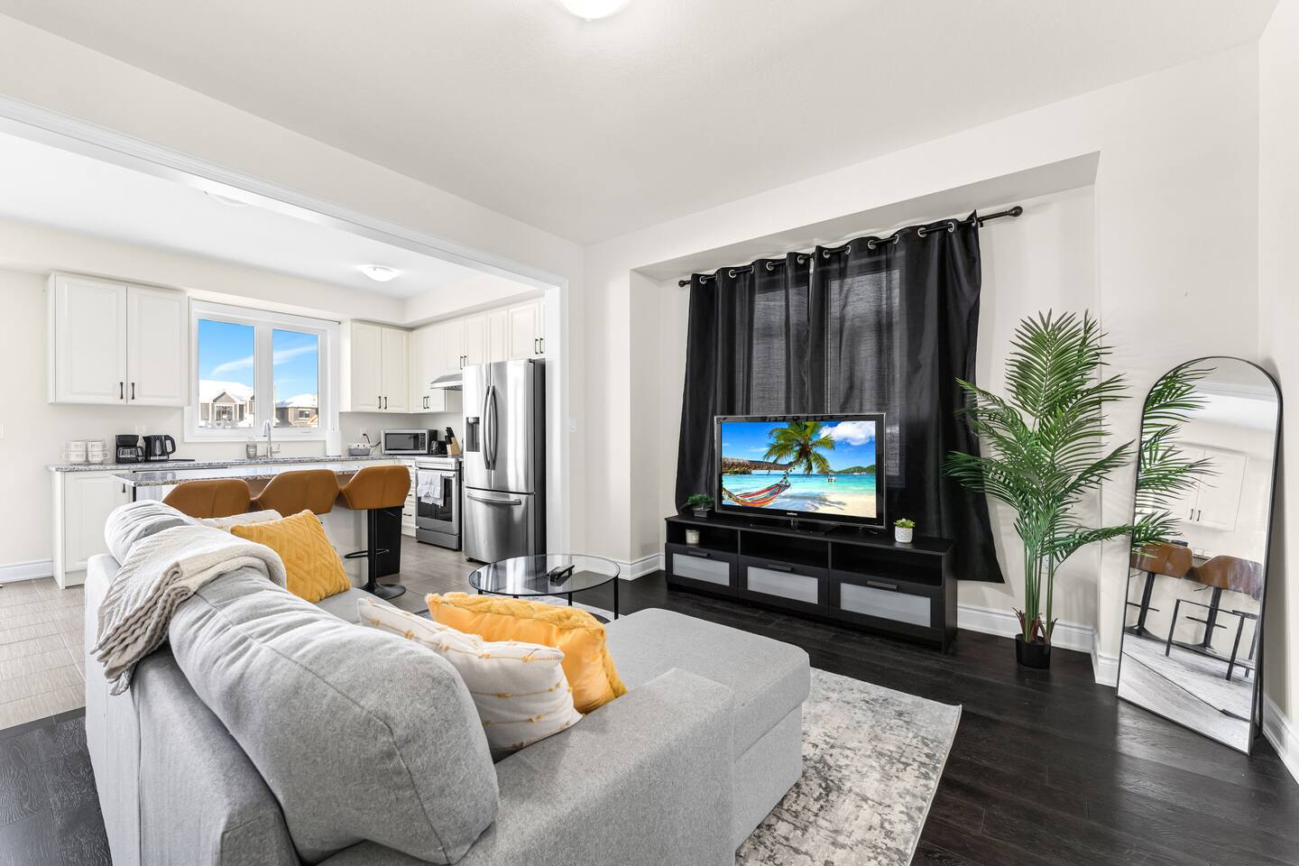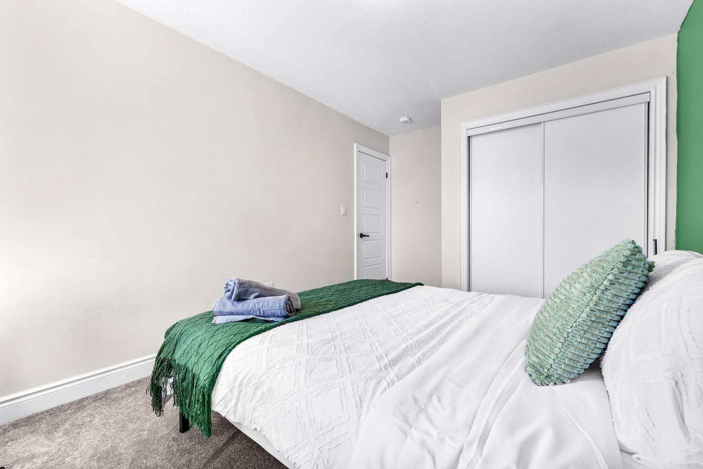 ⭐️PROPERTY HIGHLIGHTS⭐️ ► Modern & Stylish Home – the perfect stay for fun and relaxation! ► Prime LOCATION! 10 mins to Niagara Falls ► Air Hockey ► Family Board Games ► Complementary: Coffee, Tea ► Sleeps 6 adults & 1 baby/toddler ► Fast WIFI & Fire TV ► Comfortable Memory Foam mattresses ► Dedicated work station and much much more! ⭐️ ‼️IMPORTANT‼️ ►There's 2 parking spots on the driveway. You may find additional parking on the street. ► The Living & dining room, kitchen are located on the main floor. ► The 3 bedroom are located on the second floor. ⭐️ LIVING ROOM ⭐️ So cozy, with lots of natural light, oversized comfy couch, overlooking beautiful bay windows. ✔ Oversized comfortable Sofa ✔ Throw blanket ✔ Beautiful Bay windows with lots of natural light ✔ 42” Fire TV ✔ Coffee Table ✔ Board games & Books ⭐️ DINING AREA ⭐️ ✔ Seats 6 people + 3 people bar table in the kitchen ⭐️ KITCHEN ⭐️ It is fully equipped and stocked with everything you need for the chef in the group. ✔ Bar Table seating 3 people ✔ Fully equipped ✔ Complementary coffee, tea ✔ Spice rack to cook chef meals ✔ Toddler/Baby bowls/plates ✔ Cooking essentials ✔ Microwave ✔ Stove ✔ Oven ✔ Refrigerator/Freezer ✔ Kettle ✔ Toaster ✔ Glasses ✔ Silverware ✔ Pots & Pans and much much more!! ⭐️ Games Room ⭐️ ➦Our games space is situated in the living room. ✔ Air Hockey ✔ Board Games ⭐️ MASTER KING BEDROOM 1 ⭐️ Sleeps 2, this bedroom features a luxurious king-sized bed designed to ensure a restful night's sleep. The room is thoughtfully furnished to provide a serene and comfortable environment, allowing you to unwind and rejuvenate during your stay. ✔ Comfortable Memory Foam Mattress ✔ King–Size Bed with Pillows, Linens, and Sheets ✔ Room darkening shades ✔ Closet with Hangers and Shelf ✔ Pack n' Play ✔ Side tables with night lamps ⭐️ MASTER QUEEN BEDROOM 2 ⭐️ Sleeps 2, this bedroom features a luxurious queen-sized bed designed to ensure a restful night's sleep. The room is thoughtfully furnished to provide a serene and comfortable environment. The green-themed interior creates a calming atmosphere, promoting relaxation and tranquility. ✔ Comfortable Memory Foam Mattress ✔ Queen–Size Bed with Pillows, Linens, and Sheets ✔ Room darkening shades ✔ Closet with Hangers and Shelf ✔ Side tables with night lamps ⭐️ QUEEN BEDROOM 3 ⭐️ Sleeps 2, this bedroom features a luxurious queen-sized bed designed to ensure a restful night's sleep. The blue-themed interior promotes relaxation and tranquility. ✔ Comfortable Memory Foam Mattress ✔ Queen-sized Bed with Pillows, Linens, and Sheets ✔ Side Table ✔ Closet with Hangers and Shelf ⭐️ BATHROOM ⭐️ The apartment features a spacious 1 full bathroom stocked with all necessities and essential toiletries including: ✔ Clawfoot Bathtub with a Shower ✔ Shampoo/Conditioner/Body Wash ✔ Hand soap ✔ Mirror ✔ Towel - body & face ✔ Essential Toiletries ⭐️ LAUNDRY ⭐️ ✔ In unit washer & dryer free for you to use ✔ Laundry Detergent ✔ Iron & Ironing board ✔ Hand Held Vacuum ✔ Broom & dust pan