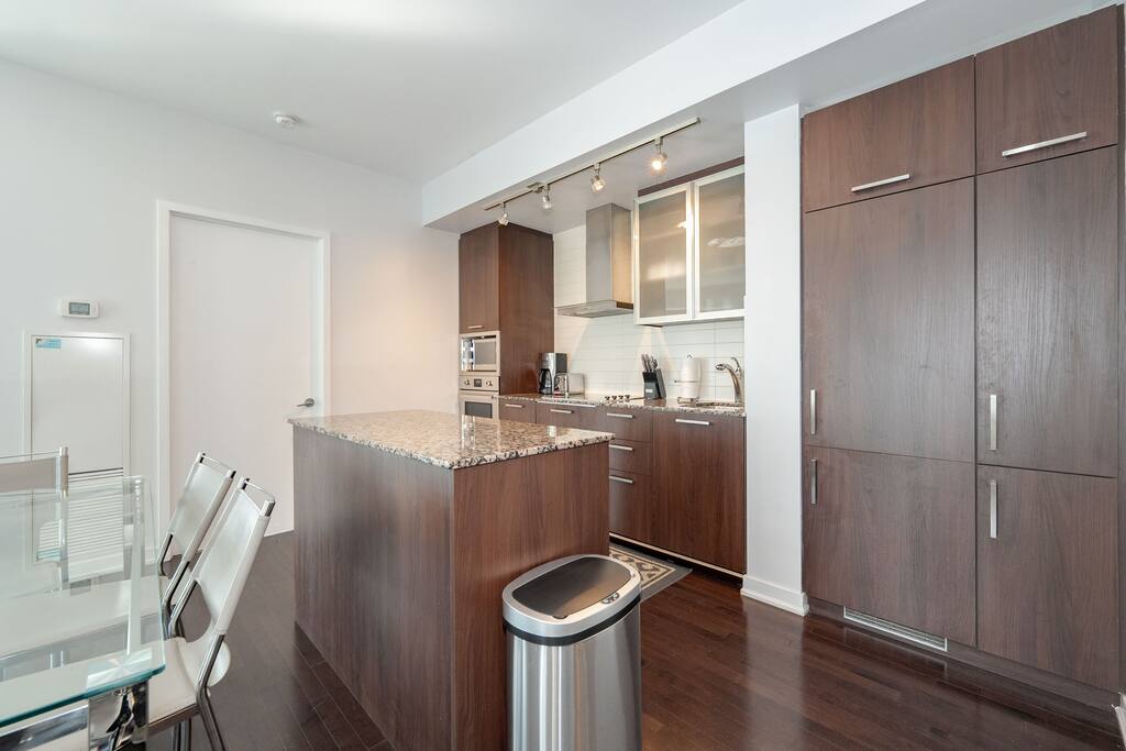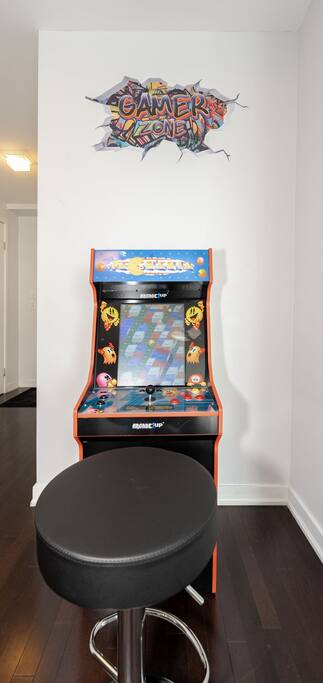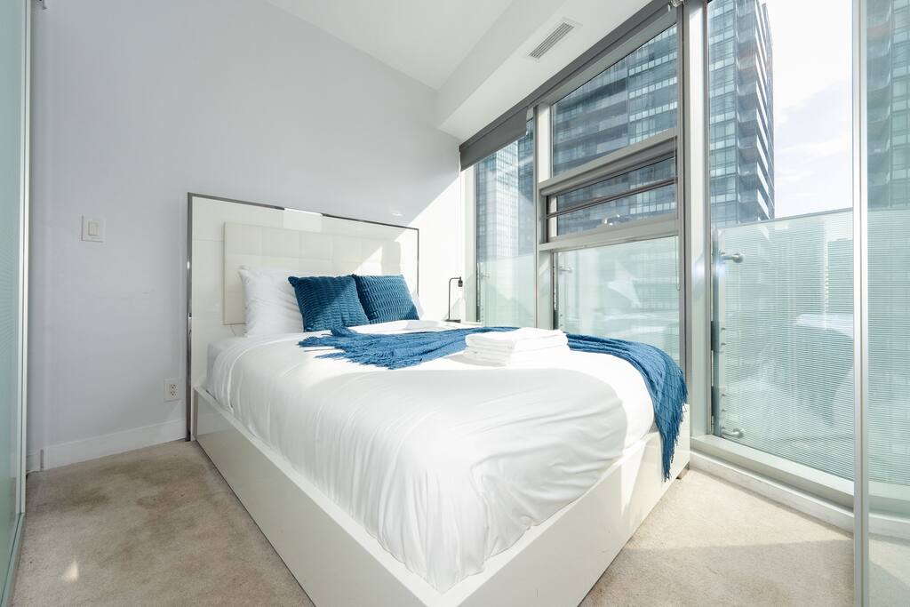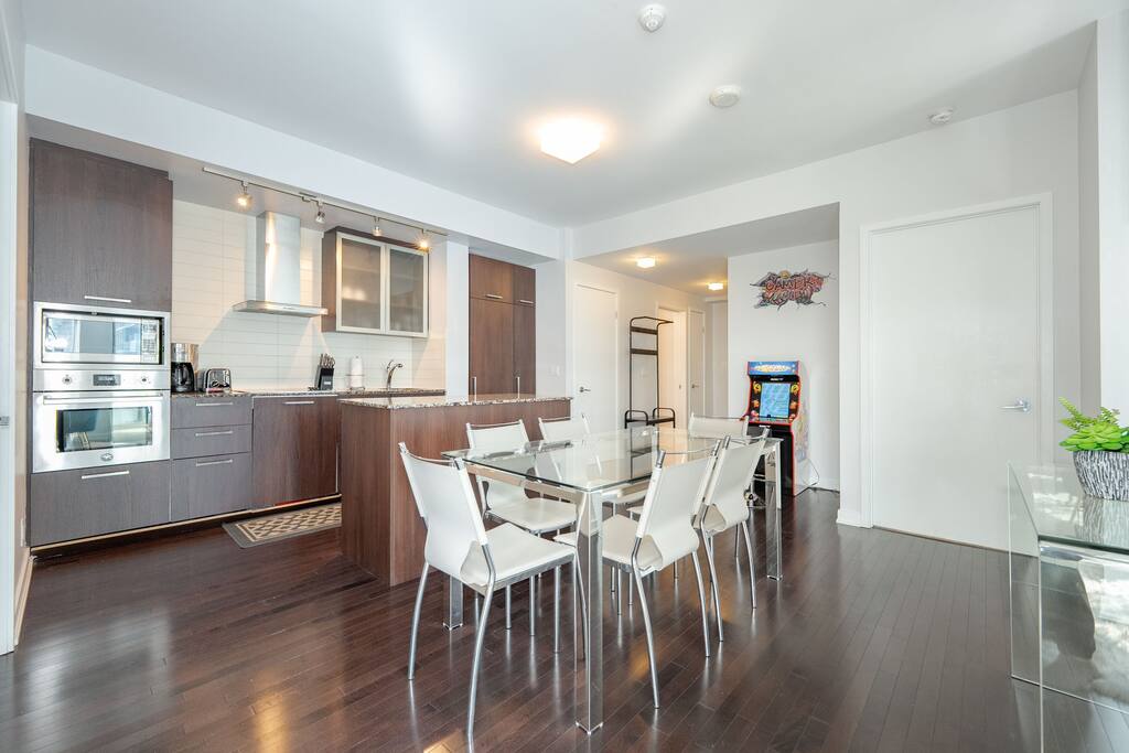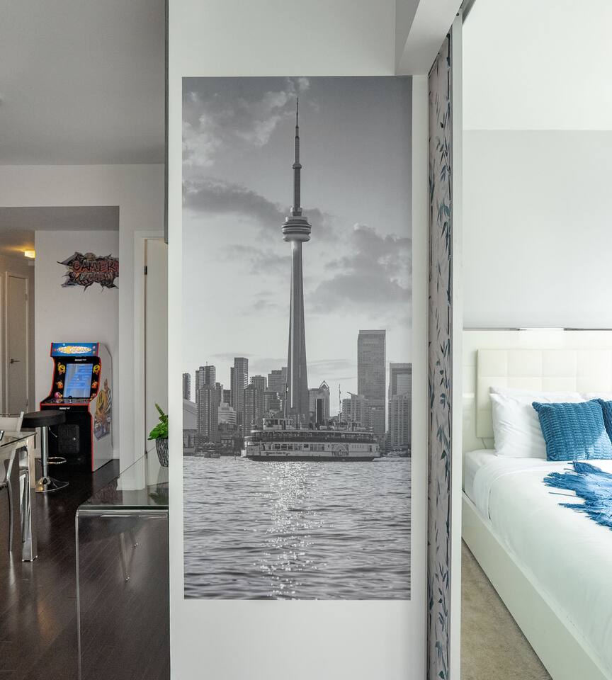 ✤ Entire 3 Bedroom lake view condo on the 38th Floor in central downtown Toronto with FREE UNDERGROUND PARKING. ✤ ⭐️LIVING ROOM ► A large, spacious, and comfortable lounging area for you to relax and unwind while enjoying the company of friends and family! Watch some TV or check out the gorgeous lake views from the windows that stretch across the living room. ✔ Comfortable Sofa Bed with Pillows ✔ 55 inch 4k Ultra HD Smart TV ✔ Ceiling Accent Lighting ⭐️ KITCHEN & DINING ► The kitchen area is equipped with numerous cooking appliances. Everything you need to make yourself feel at home. If you want to take a break from the Central City restaurants, then this is the place for you. Have some breakfast at the island or indulge in a family dinner on the dining table. ► Enjoy a nostalgic gaming experience with a classic Pac-Man arcade game available for your entertainment during your stay. ⭐️ MASTER BEDROOM ► The bedroom features a comfortable Queen size beds designed to provide you with the perfect resting experience. Besides the hotel-like comfort, the bedroom is furnished to meet all your business needs. ✔ Queen–Size Bed with Pillows, Linens, and Sheets ✔ Wardrobe with Hangers and Custom Shelves ⭐️ MASTER BATHROOM ► The apartment features a spacious full bathroom with a free standing tub, standing shower, and a makeup vanity, stocked with all necessities and essential toiletries, so you don't need to bring your own. ⭐️ BEDROOM 2 ► The bedroom features 1 comfortable Queen size bed designed to provide you with the perfect resting experience. ✔ QUEEN–Size Bed with Pillows, Linens, and Sheets ⭐️BEDROOM 3 ► The bedroom features 1 comfortable Queen size bed designed to provide you with the perfect resting experience. ✔ QUEEN–Size Bed with Pillows, Linens, and Sheets ⭐️ BATHROOM 2 ► The apartment features a spacious full bathroom stocked with all necessities and essential toiletries, so you don't need to bring your own.