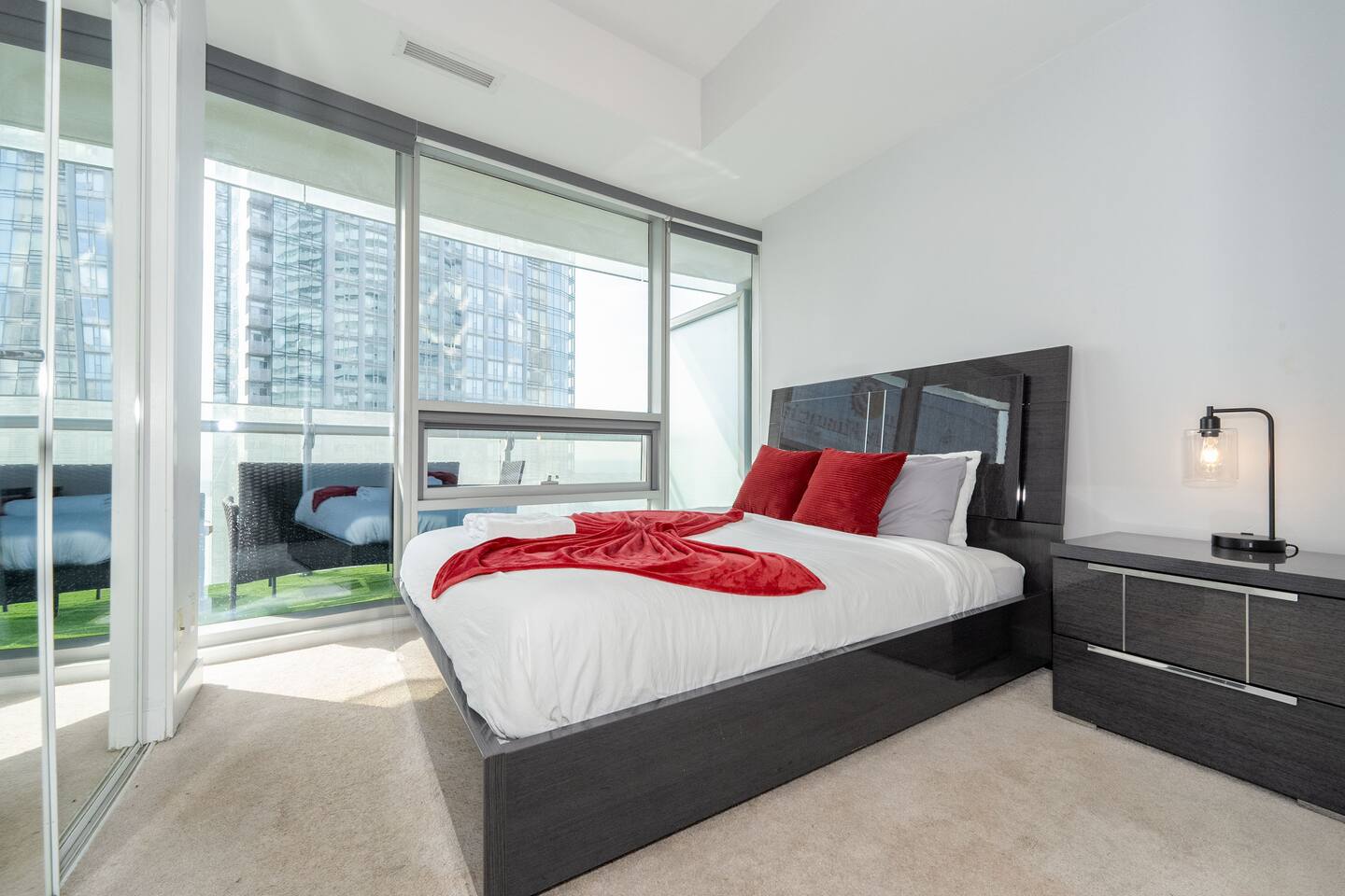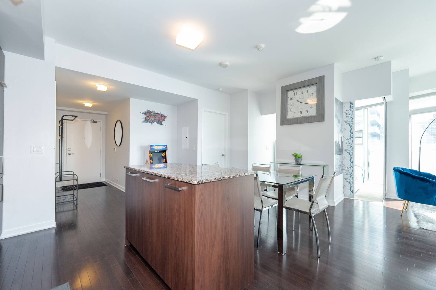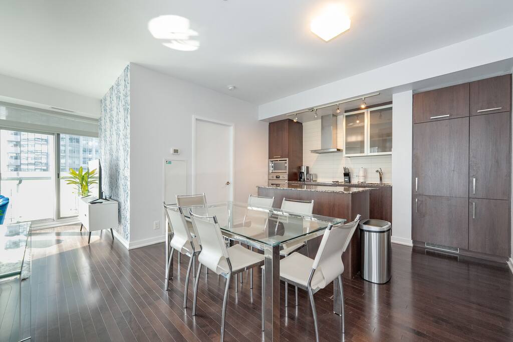 ✤ Entire 3 Bedroom lake view condo on the 38th Floor in central downtown Toronto with FREE UNDERGROUND PARKING. ✤ ⭐️LIVING ROOM ► A large, spacious, and comfortable lounging area for you to relax and unwind while enjoying the company of friends and family! Watch some TV or check out the gorgeous lake views from the windows that stretch across the living room. ✔ Comfortable Sofa Bed with Pillows ✔ 55 inch 4k Ultra HD Smart TV ✔ Ceiling Accent Lighting ⭐️ KITCHEN & DINING ► The kitchen area is equipped with numerous cooking appliances. Everything you need to make yourself feel at home. If you want to take a break from the Central City restaurants, then this is the place for you. Have some breakfast at the island or indulge in a family dinner on the dining table. ► Enjoy a nostalgic gaming experience with a classic Pac-Man arcade game available for your entertainment during your stay. ⭐️ MASTER BEDROOM ► The bedroom features a comfortable Queen size beds designed to provide you with the perfect resting experience. Besides the hotel-like comfort, the bedroom is furnished to meet all your business needs. ✔ Queen–Size Bed with Pillows, Linens, and Sheets ✔ Wardrobe with Hangers and Custom Shelves ⭐️ MASTER BATHROOM ► The apartment features a spacious full bathroom with a free standing tub, standing shower, and a makeup vanity, stocked with all necessities and essential toiletries, so you don't need to bring your own. ⭐️ BEDROOM 2 ► The bedroom features 1 comfortable Queen size bed designed to provide you with the perfect resting experience. ✔ QUEEN–Size Bed with Pillows, Linens, and Sheets ⭐️BEDROOM 3 ► The bedroom features 1 comfortable Queen size bed designed to provide you with the perfect resting experience. ✔ QUEEN–Size Bed with Pillows, Linens, and Sheets ⭐️ BATHROOM 2 ► The apartment features a spacious full bathroom stocked with all necessities and essential toiletries, so you don't need to bring your own.