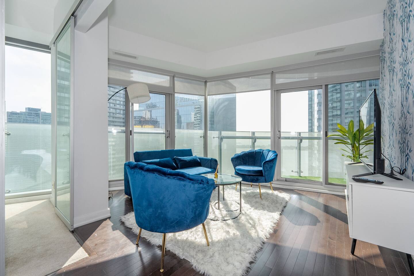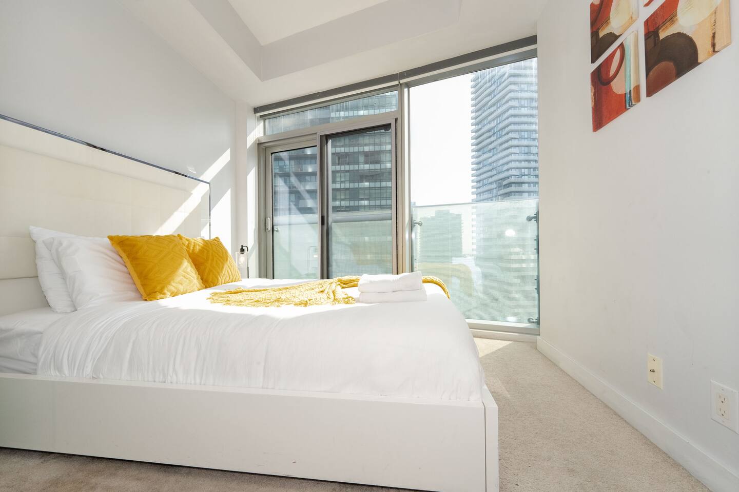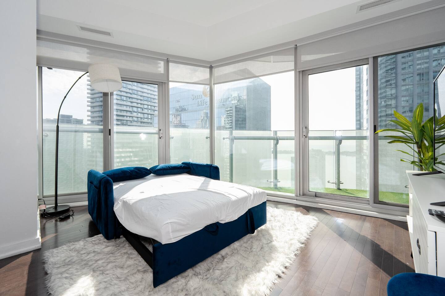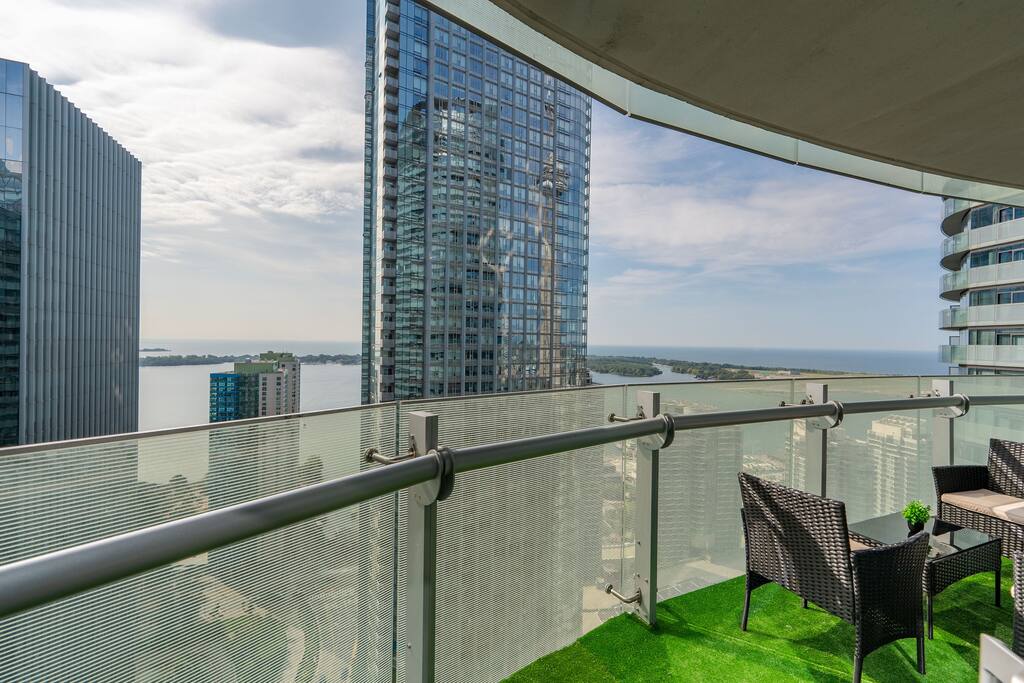 ✤ You will be steps away from iconic attractions like the CN Tower, Rogers Centre, and Scotiabank Arena. This is a prime location, in the heart of downtown. Most concerts, shows and events are held nearby! You will also be in the center of a wide array of restaurants and bars. You'll be steps away from the Union Station. For more, check the neighborhood description below. This unit offers a panoramic lake and city view framed by floor to ceiling windows! ✤