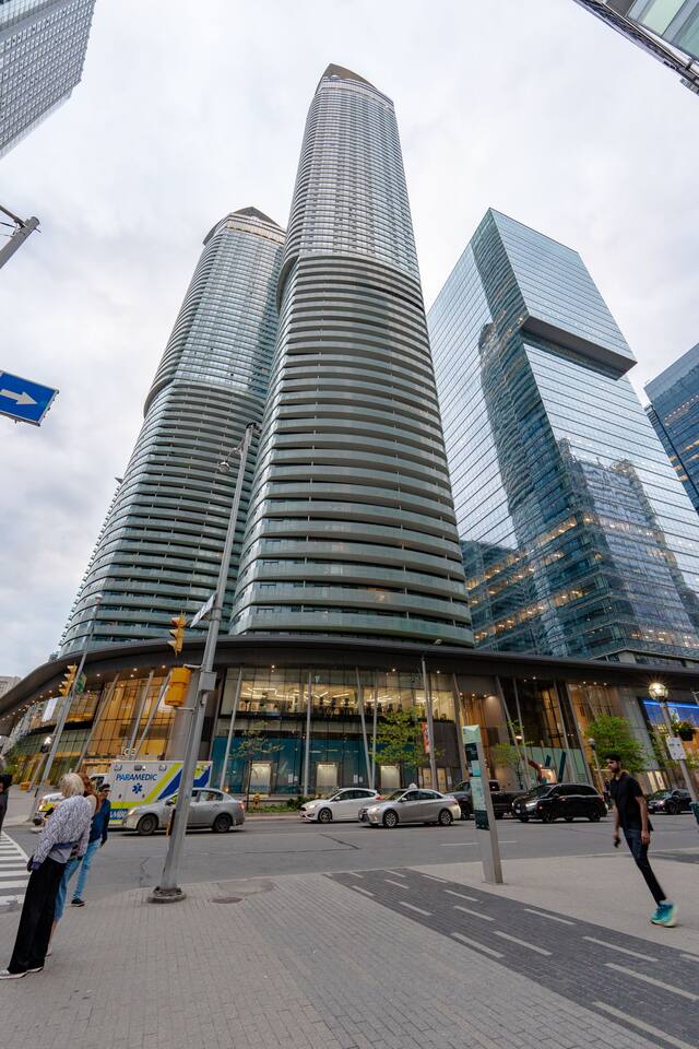 Discover Toronto’s Vibrant Waterfront Neighborhood! Welcome to your urban getaway, perfectly situated in Toronto’s Waterfront Communities, where city charm meets lakeside tranquility. Whether you’re visiting for business, a weekend escape, or an extended stay, this location places you at the heart of the city’s most exciting attractions—all within a short stroll. Top Nearby Attractions & Distances Harbourfront Centre – ~0.2 mi / 3–5 min walk A bustling cultural hub hosting over 4,000 events annually, from theatre and live music to dance and art exhibitions—all along the picturesque Lake Ontario shoreline. Roundhouse Park – ~0.33 km / 3 min walk Home to historic railway exhibits, the Toronto Railway Museum, and a family-friendly playground—perfect for a quick afternoon outing. Harbour Square Park & Waterfront Trails – 3–5 min walk. Enjoy scenic green spaces and lakeside pathways for walking, jogging, or cycling—ideal for a peaceful morning stroll or sunset ride. St. Lawrence Market – ~0.5 mi / 10 min walk. One of the world’s best food markets, offering fresh local produce, artisanal delicacies, international bites, and a charming historic atmosphere. Fairmont Royal York & Union Station – ~0.2 mi / 4–5 min walk. Step into a historic Toronto landmark and gain instant access to the city’s main transit hub, connecting you to streetcars, subways, and regional trains. Neighborhood Highlights Walkability: Rated 98/100 – a true Walker’s Paradise, meaning nearly everything you need is within a few minutes on foot. Transit Access: Union Station is steps away, making citywide commuting or regional travel seamless. Dining & Nightlife: From casual waterfront cafés to world-class restaurants and trendy bars, the neighborhood is brimming with culinary delights. Shopping & Entertainment: Quick access to the PATH underground shopping network, Scotiabank Arena, and Rogers Centre for sports and concerts.