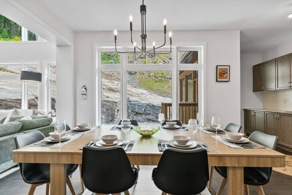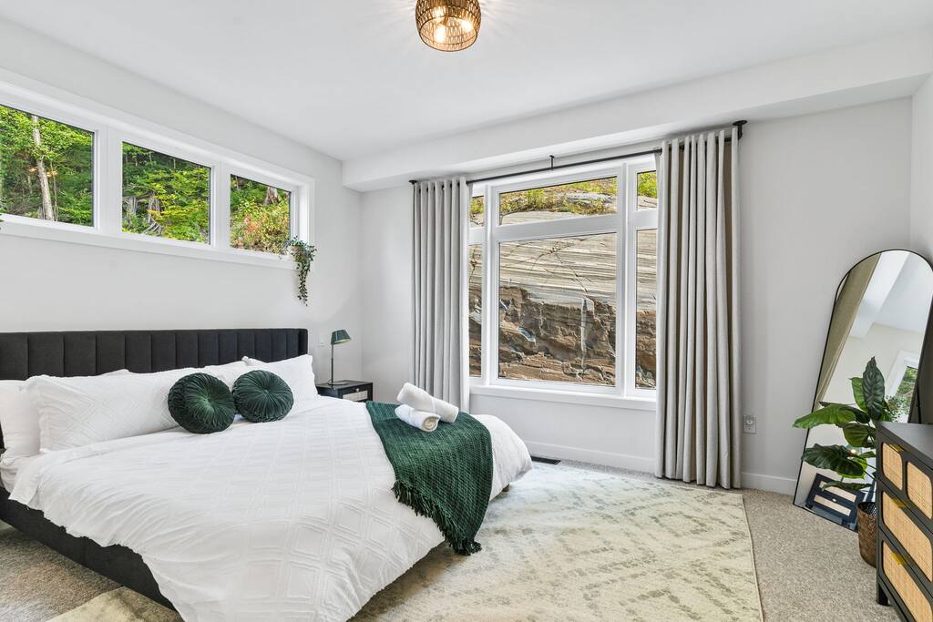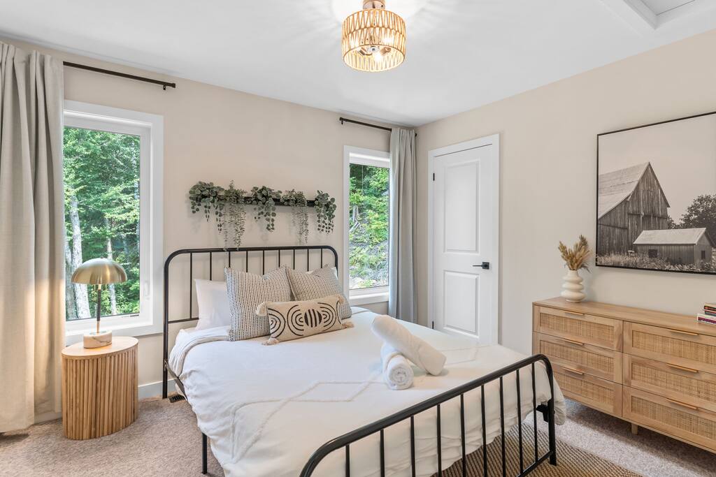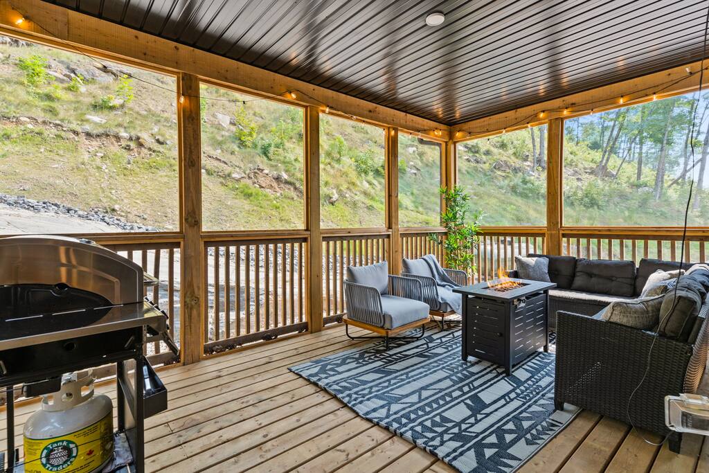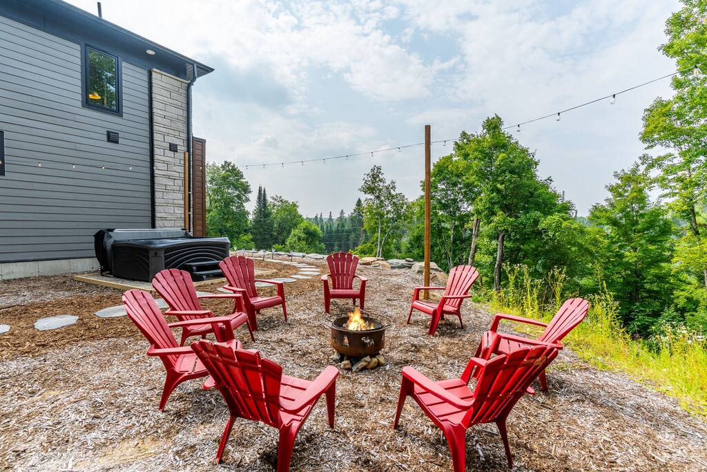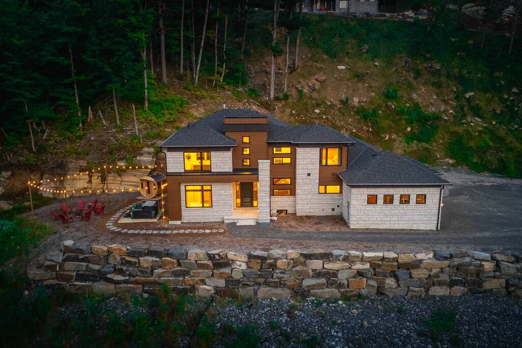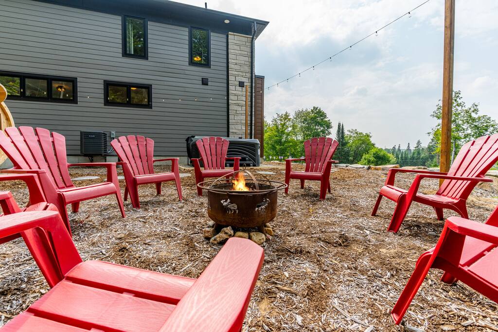 âď¸PROPERTY HIGHLIGHTSâď¸ âş Modern & Stylish Home â the perfect stay for fun and relaxation! âş Prime LOCATION! âş HOT TUB/ SAUNA / FIREPIT/POOL TABLE âş Family Board Games âş Sleeps 8 adults âş Fast WIFI & 75 INCH Smart TV âş Comfortable Memory Foam mattresses âş Dedicated work station âď¸BACKYARD âşThe backyard is your personal oasis, designed for relaxation and fun. âUnwind in the 4-seater hot tub, perfect for relaxing after a day of adventure. âEnjoy outdoor sauna in the woods. As the evening sets in, gather around the cozy fire pit, ideal for warming up and sharing stories under the stars. This backyard is the ultimate space to enjoy nature, relaxation, and quality time with those who matter most. âď¸LIVING ROOM âş Built in 2024, this cottage features vaulted ceilings and an open-concept design with floor-to-ceiling windows that flood the space with natural light and showcase the serene surroundings. The boutique, cottage-style dĂŠcor adds a modern touch, making you feel right at home among the pines. Start your day with coffee or tea on the cozy leather sofa, surrounded by soft pillows and plush blankets, or unwind with a good book in the oversized basket chair, perfect for sharing with a partner. â 75 inch 4k Ultra HD Smart TV âď¸KITCHEN & DINING âş The kitchen area is equipped with numerous cooking appliances. Everything you need to make yourself feel at home. If you want to take a break from the city hustle, then this is the place for you. Have some breakfast at the patio or indulge in a family dinner on the dining table. âď¸MASTER BEDROOM âş Enjoy stunning views through high-ceiling windows that look out into the woods, where you can watch the sunrise filtering through the pines in complete privacy. Step onto the private patio to savor the fresh morning air from a cozy couch, or head to the backyard for a peaceful soak in the hot tub. Sleeps 2, The master bedroom offers: â A luxurious KING-size ENDY mattress, dressed in soft cotton linens and a plush goose-down duvet. Youâll love every moment of cottage time here! âď¸MASTER BATHROOM âş The apartment features a spacious full bathroom with a free standing tub, standing shower, and a makeup vanity, stocked with all necessities and essential toiletries, so you don't need to bring your own. âď¸BEDROOM 2 âşThe bedroom offers a cozy QUEEN-size bed, thoughtfully designed for a restful and rejuvenating sleep experience. This comfortable bed is dressed with soft, high-quality linens, smooth sheets, and supportive pillows, all carefully chosen to help you relax deeply and wake up refreshed. Sleeps 2 âď¸BATHROOM 2 âşThe apartment features a spacious full bathroom stocked with all necessities and essential toiletries, so you don't need to bring your own. âď¸BEDROOM 3 âşThe bedroom offers a cozy QUEEN-size bed, thoughtfully designed for a restful and rejuvenating sleep experience. This comfortable bed is dressed with soft, high-quality linens, smooth sheets, and supportive pillows, all carefully chosen to help you relax deeply and wake up refreshed. Sleeps 2 âď¸BEDROOM 3 This spacious bedroom is perfect for families or groups, featuring two bunk beds that each sleep up to three people. With a full-size bed on the bottom and a twin on top, each bunk comfortably accommodates both kids and adults. The room is bright, cozy, and thoughtfully designed to provide a fun yet restful space for guests of all ages. Itâs an ideal setup for larger families or groups traveling together. Sleeps 6 âď¸GAME ROOM âşWelcome to the ultimate gaming room with pool table, ping pong and foosballâdesigned for fun, relaxation, and connection! This inviting space features offers: â Foosball table for some friendly competition âPool Table for entertainment âPing Pong for entertainment âď¸MUSKOKA ROOM Step into the serene Muskoka Room, a perfect retreat to relax and enjoy natureâs beauty. âSink into the spacious couch, ideal for sipping your morning coffee or unwinding with drinks at night. âStay cozy with the electric fire pit, providing warmth and ambiance, while ferry lights add a magical glow to the space. âA 4-burner BBQ is ready for you to cook up your favorite meals, making this room the perfect blend of comfort, charm, and outdoor relaxation for an unforgettable stay. âď¸THINGS TO DOâď¸ âď¸Winter Activities: Embrace the winter season with skiing, snowboarding, snowshoeing, and snowmobiling, all just 10 minutes from Hidden Valley Ski Slopes & Snowboard Area. âď¸Spring, Summer, and Fall Activities: Discover a variety of outdoor adventures including: âbiking âhiking ârock climbing âgolf âhorseback riding âVisits to local microbreweries All within 10 minutes. Keep an eye out for wildlife sightings along the way! Explore nearby national parks such as: âLimberlost Reserve âArrowhead Park â Algonquin Park It just 15-20 minutes away. Conveniently located, Deerhurst Resort and Dorset are only 10 minutes away, with Huntsville just 15 minutes from your door. For water lovers, enjoy canoeing and motorized water sports with rentals available just 10 minutes away. Seasonal farmers, markets and local events are also within reach, adding charm to your stay!