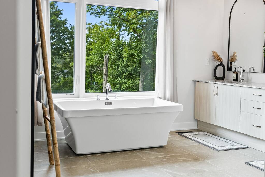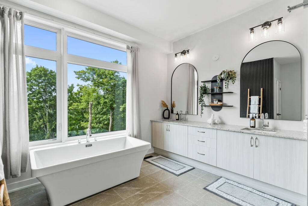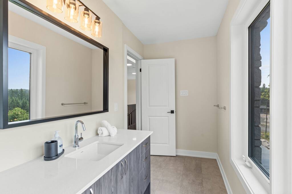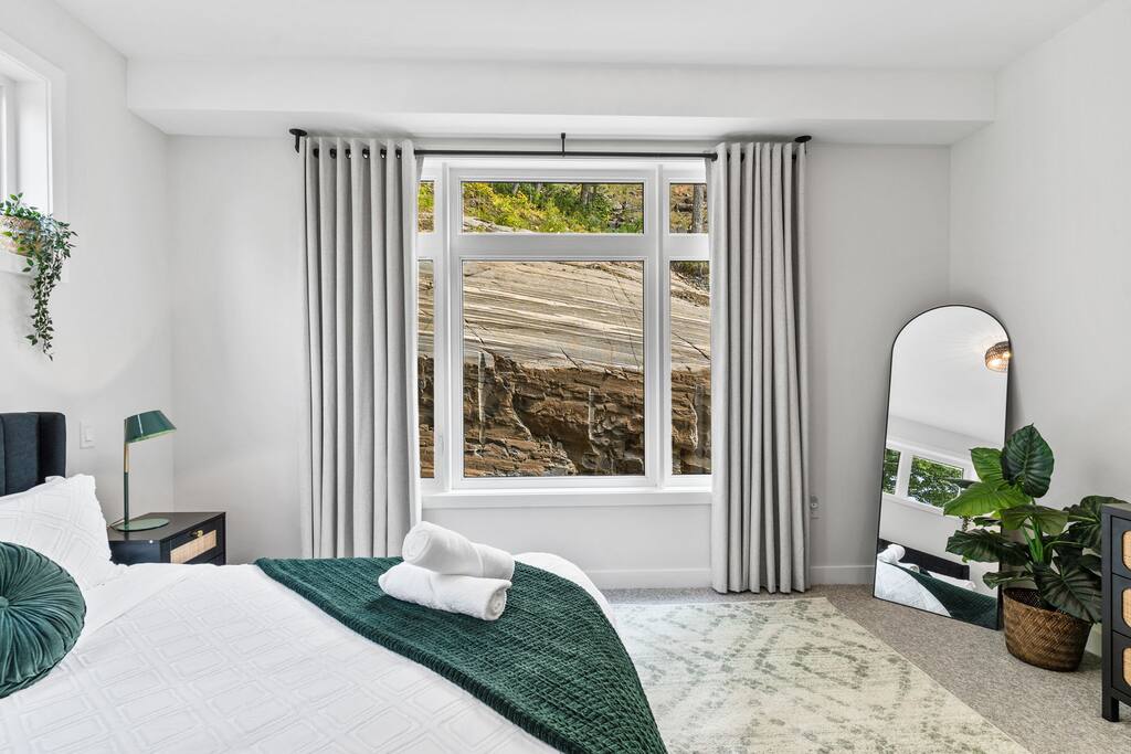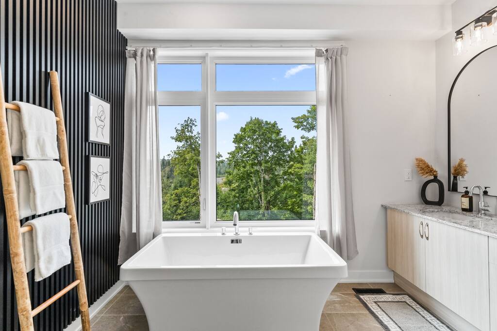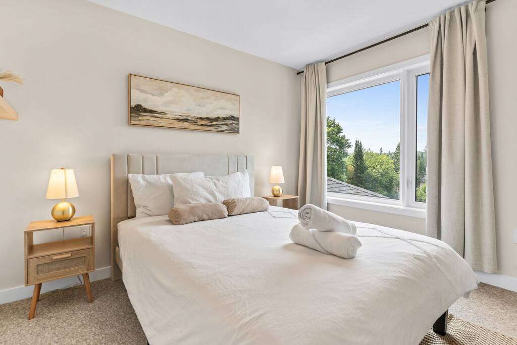âď¸PROPERTY HIGHLIGHTSâď¸ âş Modern & Stylish Home â the perfect stay for fun and relaxation! âş Prime LOCATION! âş HOT TUB/ SAUNA / FIREPIT/POOL TABLE âş Family Board Games âş Sleeps 8 adults âş Fast WIFI & 75 INCH Smart TV âş Comfortable Memory Foam mattresses âş Dedicated work station âď¸BACKYARD âşThe backyard is your personal oasis, designed for relaxation and fun. âUnwind in the 4-seater hot tub, perfect for relaxing after a day of adventure. âEnjoy outdoor sauna in the woods. As the evening sets in, gather around the cozy fire pit, ideal for warming up and sharing stories under the stars. This backyard is the ultimate space to enjoy nature, relaxation, and quality time with those who matter most. âď¸LIVING ROOM âş Built in 2024, this cottage features vaulted ceilings and an open-concept design with floor-to-ceiling windows that flood the space with natural light and showcase the serene surroundings. The boutique, cottage-style dĂŠcor adds a modern touch, making you feel right at home among the pines. Start your day with coffee or tea on the cozy leather sofa, surrounded by soft pillows and plush blankets, or unwind with a good book in the oversized basket chair, perfect for sharing with a partner. â 75 inch 4k Ultra HD Smart TV âď¸KITCHEN & DINING âş The kitchen area is equipped with numerous cooking appliances. Everything you need to make yourself feel at home. If you want to take a break from the city hustle, then this is the place for you. Have some breakfast at the patio or indulge in a family dinner on the dining table. âď¸MASTER BEDROOM âş Enjoy stunning views through high-ceiling windows that look out into the woods, where you can watch the sunrise filtering through the pines in complete privacy. Step onto the private patio to savor the fresh morning air from a cozy couch, or head to the backyard for a peaceful soak in the hot tub. Sleeps 2, The master bedroom offers: â A luxurious KING-size ENDY mattress, dressed in soft cotton linens and a plush goose-down duvet. Youâll love every moment of cottage time here! âď¸MASTER BATHROOM âş The apartment features a spacious full bathroom with a free standing tub, standing shower, and a makeup vanity, stocked with all necessities and essential toiletries, so you don't need to bring your own. âď¸BEDROOM 2 âşThe bedroom offers a cozy QUEEN-size bed, thoughtfully designed for a restful and rejuvenating sleep experience. This comfortable bed is dressed with soft, high-quality linens, smooth sheets, and supportive pillows, all carefully chosen to help you relax deeply and wake up refreshed. Sleeps 2 âď¸BATHROOM 2 âşThe apartment features a spacious full bathroom stocked with all necessities and essential toiletries, so you don't need to bring your own. âď¸BEDROOM 3 âşThe bedroom offers a cozy QUEEN-size bed, thoughtfully designed for a restful and rejuvenating sleep experience. This comfortable bed is dressed with soft, high-quality linens, smooth sheets, and supportive pillows, all carefully chosen to help you relax deeply and wake up refreshed. Sleeps 2 âď¸BEDROOM 3 This spacious bedroom is perfect for families or groups, featuring two bunk beds that each sleep up to three people. With a full-size bed on the bottom and a twin on top, each bunk comfortably accommodates both kids and adults. The room is bright, cozy, and thoughtfully designed to provide a fun yet restful space for guests of all ages. Itâs an ideal setup for larger families or groups traveling together. Sleeps 6 âď¸GAME ROOM âşWelcome to the ultimate gaming room with pool table, ping pong and foosballâdesigned for fun, relaxation, and connection! This inviting space features offers: â Foosball table for some friendly competition âPool Table for entertainment âPing Pong for entertainment âď¸MUSKOKA ROOM Step into the serene Muskoka Room, a perfect retreat to relax and enjoy natureâs beauty. âSink into the spacious couch, ideal for sipping your morning coffee or unwinding with drinks at night. âStay cozy with the electric fire pit, providing warmth and ambiance, while ferry lights add a magical glow to the space. âA 4-burner BBQ is ready for you to cook up your favorite meals, making this room the perfect blend of comfort, charm, and outdoor relaxation for an unforgettable stay. âď¸THINGS TO DOâď¸ âď¸Winter Activities: Embrace the winter season with skiing, snowboarding, snowshoeing, and snowmobiling, all just 10 minutes from Hidden Valley Ski Slopes & Snowboard Area. âď¸Spring, Summer, and Fall Activities: Discover a variety of outdoor adventures including: âbiking âhiking ârock climbing âgolf âhorseback riding âVisits to local microbreweries All within 10 minutes. Keep an eye out for wildlife sightings along the way! Explore nearby national parks such as: âLimberlost Reserve âArrowhead Park â Algonquin Park It just 15-20 minutes away. Conveniently located, Deerhurst Resort and Dorset are only 10 minutes away, with Huntsville just 15 minutes from your door. For water lovers, enjoy canoeing and motorized water sports with rentals available just 10 minutes away. Seasonal farmers, markets and local events are also within reach, adding charm to your stay!