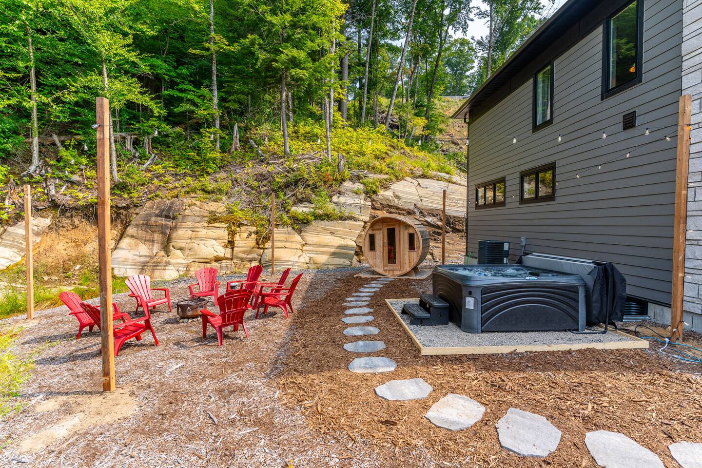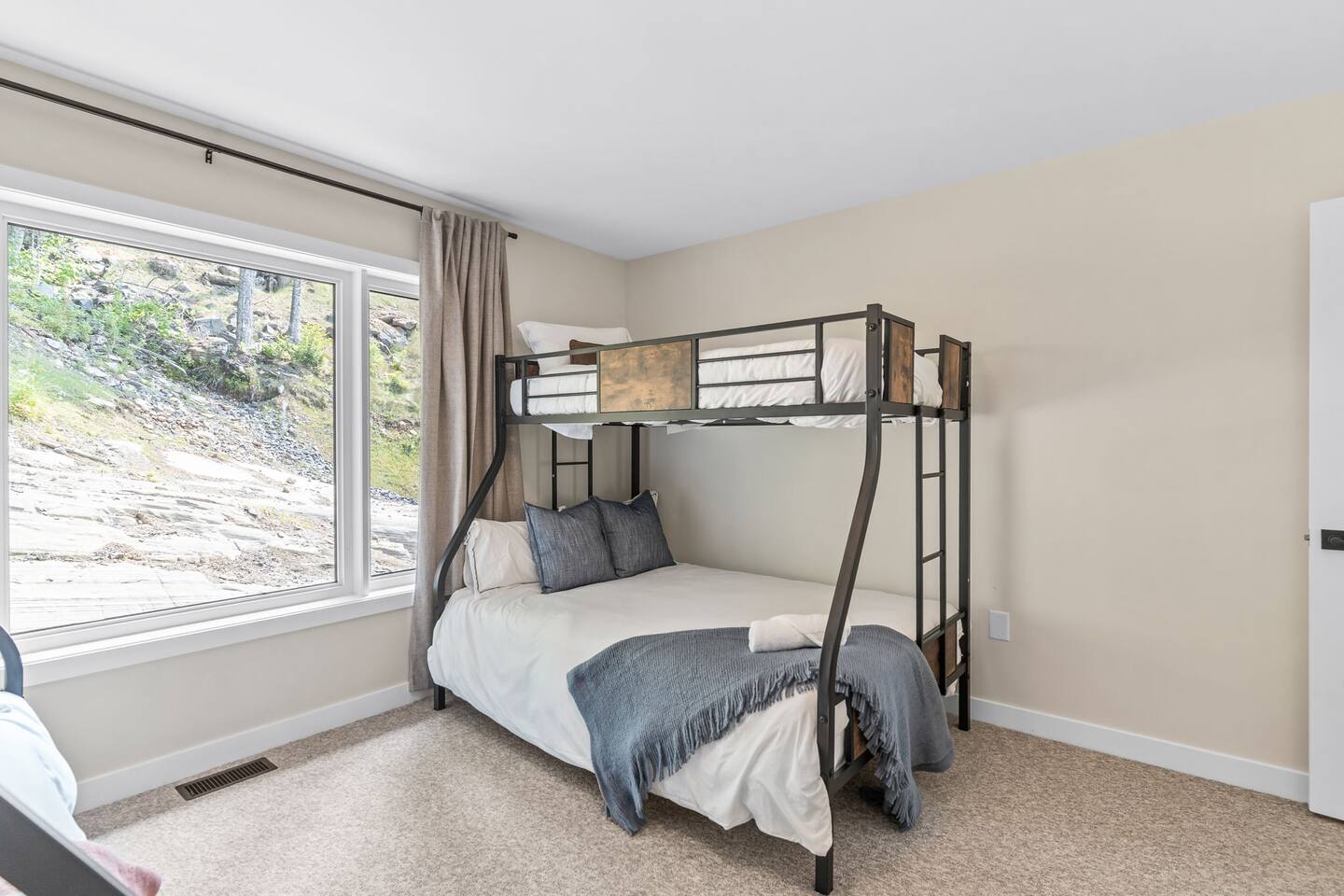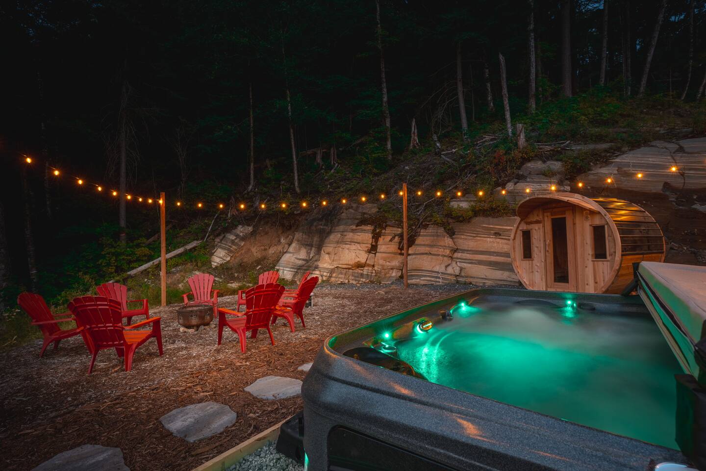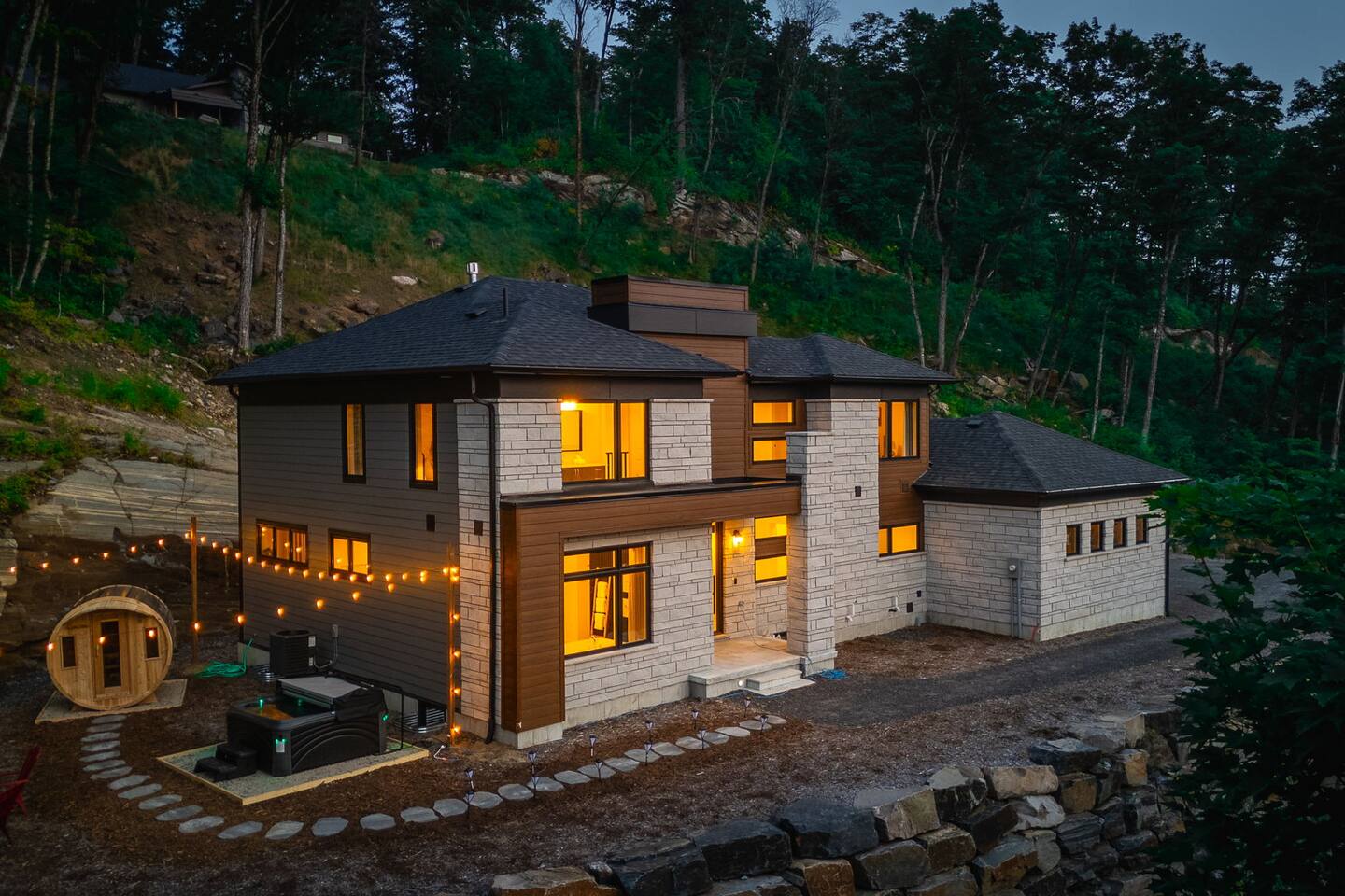 âď¸PROPERTY HIGHLIGHTSâď¸ âş Modern & Stylish Home â the perfect stay for fun and relaxation! âş Prime LOCATION! âş HOT TUB/ SAUNA / FIREPIT/POOL TABLE âş Family Board Games âş Sleeps 8 adults âş Fast WIFI & 75 INCH Smart TV âş Comfortable Memory Foam mattresses âş Dedicated work station âď¸BACKYARD âşThe backyard is your personal oasis, designed for relaxation and fun. âUnwind in the 4-seater hot tub, perfect for relaxing after a day of adventure. âEnjoy outdoor sauna in the woods. As the evening sets in, gather around the cozy fire pit, ideal for warming up and sharing stories under the stars. This backyard is the ultimate space to enjoy nature, relaxation, and quality time with those who matter most. âď¸LIVING ROOM âş Built in 2024, this cottage features vaulted ceilings and an open-concept design with floor-to-ceiling windows that flood the space with natural light and showcase the serene surroundings. The boutique, cottage-style dĂŠcor adds a modern touch, making you feel right at home among the pines. Start your day with coffee or tea on the cozy leather sofa, surrounded by soft pillows and plush blankets, or unwind with a good book in the oversized basket chair, perfect for sharing with a partner. â 75 inch 4k Ultra HD Smart TV âď¸KITCHEN & DINING âş The kitchen area is equipped with numerous cooking appliances. Everything you need to make yourself feel at home. If you want to take a break from the city hustle, then this is the place for you. Have some breakfast at the patio or indulge in a family dinner on the dining table. âď¸MASTER BEDROOM âş Enjoy stunning views through high-ceiling windows that look out into the woods, where you can watch the sunrise filtering through the pines in complete privacy. Step onto the private patio to savor the fresh morning air from a cozy couch, or head to the backyard for a peaceful soak in the hot tub. Sleeps 2, The master bedroom offers: â A luxurious KING-size ENDY mattress, dressed in soft cotton linens and a plush goose-down duvet. Youâll love every moment of cottage time here! âď¸MASTER BATHROOM âş The apartment features a spacious full bathroom with a free standing tub, standing shower, and a makeup vanity, stocked with all necessities and essential toiletries, so you don't need to bring your own. âď¸BEDROOM 2 âşThe bedroom offers a cozy QUEEN-size bed, thoughtfully designed for a restful and rejuvenating sleep experience. This comfortable bed is dressed with soft, high-quality linens, smooth sheets, and supportive pillows, all carefully chosen to help you relax deeply and wake up refreshed. Sleeps 2 âď¸BATHROOM 2 âşThe apartment features a spacious full bathroom stocked with all necessities and essential toiletries, so you don't need to bring your own. âď¸BEDROOM 3 âşThe bedroom offers a cozy QUEEN-size bed, thoughtfully designed for a restful and rejuvenating sleep experience. This comfortable bed is dressed with soft, high-quality linens, smooth sheets, and supportive pillows, all carefully chosen to help you relax deeply and wake up refreshed. Sleeps 2 âď¸BEDROOM 3 This spacious bedroom is perfect for families or groups, featuring two bunk beds that each sleep up to three people. With a full-size bed on the bottom and a twin on top, each bunk comfortably accommodates both kids and adults. The room is bright, cozy, and thoughtfully designed to provide a fun yet restful space for guests of all ages. Itâs an ideal setup for larger families or groups traveling together. Sleeps 6 âď¸GAME ROOM âşWelcome to the ultimate gaming room with pool table, ping pong and foosballâdesigned for fun, relaxation, and connection! This inviting space features offers: â Foosball table for some friendly competition âPool Table for entertainment âPing Pong for entertainment âď¸MUSKOKA ROOM Step into the serene Muskoka Room, a perfect retreat to relax and enjoy natureâs beauty. âSink into the spacious couch, ideal for sipping your morning coffee or unwinding with drinks at night. âStay cozy with the electric fire pit, providing warmth and ambiance, while ferry lights add a magical glow to the space. âA 4-burner BBQ is ready for you to cook up your favorite meals, making this room the perfect blend of comfort, charm, and outdoor relaxation for an unforgettable stay. âď¸THINGS TO DOâď¸ âď¸Winter Activities: Embrace the winter season with skiing, snowboarding, snowshoeing, and snowmobiling, all just 10 minutes from Hidden Valley Ski Slopes & Snowboard Area. âď¸Spring, Summer, and Fall Activities: Discover a variety of outdoor adventures including: âbiking âhiking ârock climbing âgolf âhorseback riding âVisits to local microbreweries All within 10 minutes. Keep an eye out for wildlife sightings along the way! Explore nearby national parks such as: âLimberlost Reserve âArrowhead Park â Algonquin Park It just 15-20 minutes away. Conveniently located, Deerhurst Resort and Dorset are only 10 minutes away, with Huntsville just 15 minutes from your door. For water lovers, enjoy canoeing and motorized water sports with rentals available just 10 minutes away. Seasonal farmers, markets and local events are also within reach, adding charm to your stay!