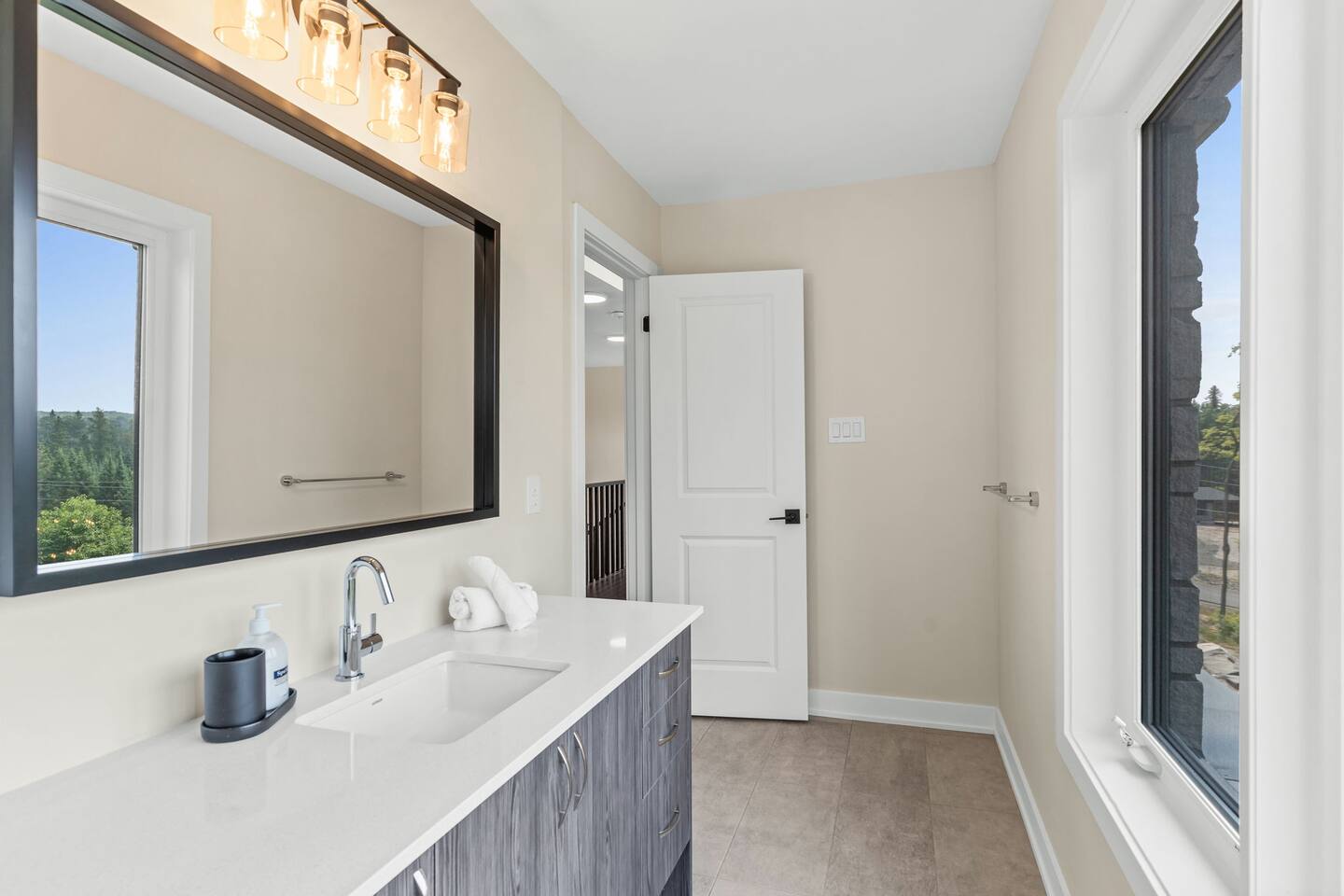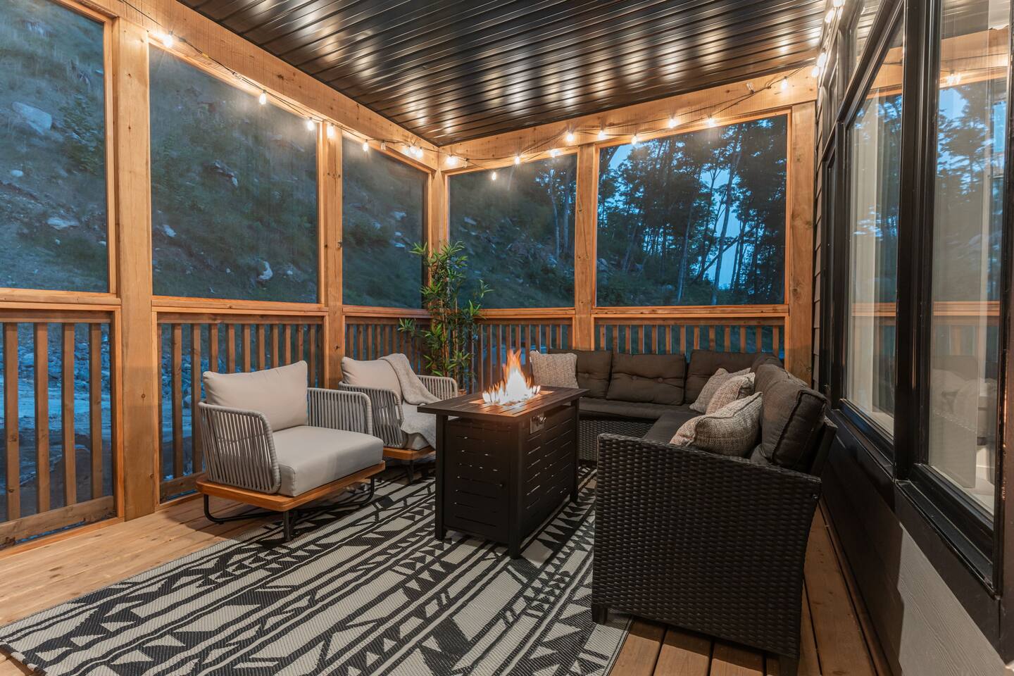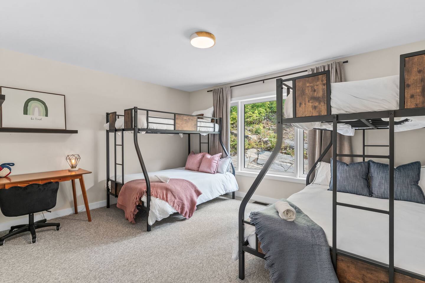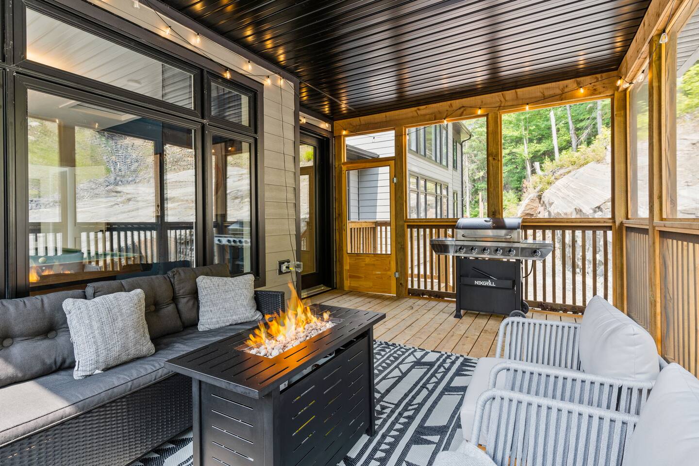 âď¸PROPERTY HIGHLIGHTSâď¸ âş Modern & Stylish Home â the perfect stay for fun and relaxation! âş Prime LOCATION! âş HOT TUB/ SAUNA / FIREPIT/POOL TABLE âş Family Board Games âş Sleeps 8 adults âş Fast WIFI & 75 INCH Smart TV âş Comfortable Memory Foam mattresses âş Dedicated work station âď¸BACKYARD âşThe backyard is your personal oasis, designed for relaxation and fun. âUnwind in the 4-seater hot tub, perfect for relaxing after a day of adventure. âEnjoy outdoor sauna in the woods. As the evening sets in, gather around the cozy fire pit, ideal for warming up and sharing stories under the stars. This backyard is the ultimate space to enjoy nature, relaxation, and quality time with those who matter most. âď¸LIVING ROOM âş Built in 2024, this cottage features vaulted ceilings and an open-concept design with floor-to-ceiling windows that flood the space with natural light and showcase the serene surroundings. The boutique, cottage-style dĂŠcor adds a modern touch, making you feel right at home among the pines. Start your day with coffee or tea on the cozy leather sofa, surrounded by soft pillows and plush blankets, or unwind with a good book in the oversized basket chair, perfect for sharing with a partner. â 75 inch 4k Ultra HD Smart TV âď¸KITCHEN & DINING âş The kitchen area is equipped with numerous cooking appliances. Everything you need to make yourself feel at home. If you want to take a break from the city hustle, then this is the place for you. Have some breakfast at the patio or indulge in a family dinner on the dining table. âď¸MASTER BEDROOM âş Enjoy stunning views through high-ceiling windows that look out into the woods, where you can watch the sunrise filtering through the pines in complete privacy. Step onto the private patio to savor the fresh morning air from a cozy couch, or head to the backyard for a peaceful soak in the hot tub. Sleeps 2, The master bedroom offers: â A luxurious KING-size ENDY mattress, dressed in soft cotton linens and a plush goose-down duvet. Youâll love every moment of cottage time here! âď¸MASTER BATHROOM âş The apartment features a spacious full bathroom with a free standing tub, standing shower, and a makeup vanity, stocked with all necessities and essential toiletries, so you don't need to bring your own. âď¸BEDROOM 2 âşThe bedroom offers a cozy QUEEN-size bed, thoughtfully designed for a restful and rejuvenating sleep experience. This comfortable bed is dressed with soft, high-quality linens, smooth sheets, and supportive pillows, all carefully chosen to help you relax deeply and wake up refreshed. Sleeps 2 âď¸BATHROOM 2 âşThe apartment features a spacious full bathroom stocked with all necessities and essential toiletries, so you don't need to bring your own. âď¸BEDROOM 3 âşThe bedroom offers a cozy QUEEN-size bed, thoughtfully designed for a restful and rejuvenating sleep experience. This comfortable bed is dressed with soft, high-quality linens, smooth sheets, and supportive pillows, all carefully chosen to help you relax deeply and wake up refreshed. Sleeps 2 âď¸BEDROOM 3 This spacious bedroom is perfect for families or groups, featuring two bunk beds that each sleep up to three people. With a full-size bed on the bottom and a twin on top, each bunk comfortably accommodates both kids and adults. The room is bright, cozy, and thoughtfully designed to provide a fun yet restful space for guests of all ages. Itâs an ideal setup for larger families or groups traveling together. Sleeps 6 âď¸GAME ROOM âşWelcome to the ultimate gaming room with pool table, ping pong and foosballâdesigned for fun, relaxation, and connection! This inviting space features offers: â Foosball table for some friendly competition âPool Table for entertainment âPing Pong for entertainment âď¸MUSKOKA ROOM Step into the serene Muskoka Room, a perfect retreat to relax and enjoy natureâs beauty. âSink into the spacious couch, ideal for sipping your morning coffee or unwinding with drinks at night. âStay cozy with the electric fire pit, providing warmth and ambiance, while ferry lights add a magical glow to the space. âA 4-burner BBQ is ready for you to cook up your favorite meals, making this room the perfect blend of comfort, charm, and outdoor relaxation for an unforgettable stay. âď¸THINGS TO DOâď¸ âď¸Winter Activities: Embrace the winter season with skiing, snowboarding, snowshoeing, and snowmobiling, all just 10 minutes from Hidden Valley Ski Slopes & Snowboard Area. âď¸Spring, Summer, and Fall Activities: Discover a variety of outdoor adventures including: âbiking âhiking ârock climbing âgolf âhorseback riding âVisits to local microbreweries All within 10 minutes. Keep an eye out for wildlife sightings along the way! Explore nearby national parks such as: âLimberlost Reserve âArrowhead Park â Algonquin Park It just 15-20 minutes away. Conveniently located, Deerhurst Resort and Dorset are only 10 minutes away, with Huntsville just 15 minutes from your door. For water lovers, enjoy canoeing and motorized water sports with rentals available just 10 minutes away. Seasonal farmers, markets and local events are also within reach, adding charm to your stay!