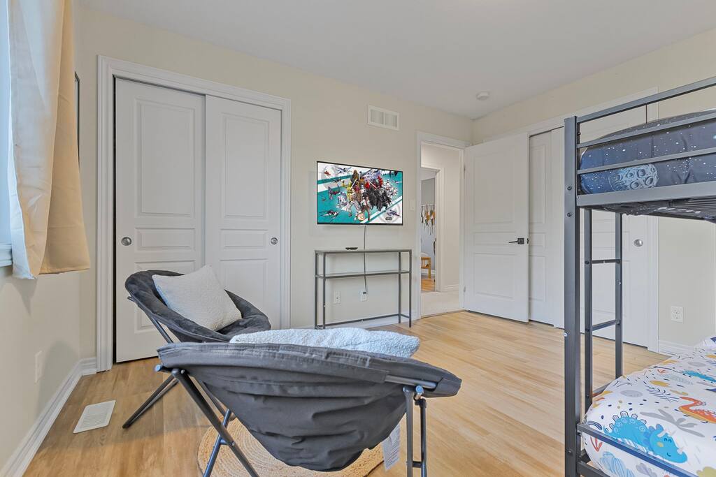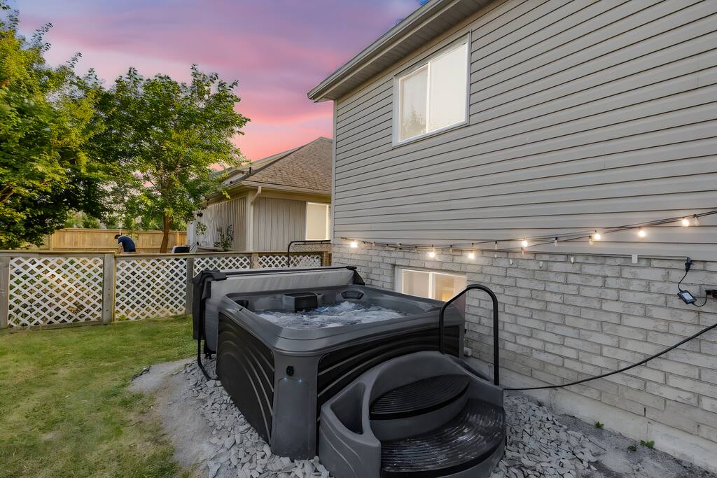 ⭐️SMOKING -Smoking is not allowed inside the house. If you must smoke, please do so outside and dispose of cigarette butts responsibly. & NOISE & SMOKE MONITORING MACHINE -For the comfort and safety of all our guests, our property is equipped with a noise and smoking monitoring device. Please note that: ⭐️Noise monitoring: This device tracks sound levels to ensure a peaceful environment but does not record audio for privacy. -Smoking detection: The device monitors air quality for smoking or vaping activity, as smoking is strictly prohibited inside the property. ⭐️CAMERA LOCATION -There is 1 camera positioned at the front entrance of the exterior and records image & sound 24/7. ⭐️ It is place to ensure that our guests feel secure and that the property remains safe. Please note, there are no cameras inside the home to respect your privacy. Your comfort and safety are our top priority. 🚨 Please note: Quiet outdoor hours are from 10:00 PM to 8:00 AM. We highly recommend enjoying all outdoor amenities during designated hours. No outdoor music is allowed after 10:00 PM. Noise complaints may result in a non-refundable cancellation of your booking and a fine up to $1000 We kindly ask that you respect the house rules and our neighbours to ensure a peaceful stay for everyone. 🚨NO PARTIES ALLOWED AS ITS A FAMILY NEIGHBORHOOD LIABILITY MESSAGE: ➦By booking your stay with us, you acknowledge that you are aware of the risks connected with activity using the hot tub, lawn games, and any activity in the surrounding area. You agree to not hold accountable or bring legal action against the property management company, the co-hosts, or the owners of the home. This message and your booking with us releases the property management company from all liability relating to injuries that may occur on location before, during, or after activity. You also agree to hold the property management company, co-hosts, and owners of the home free from any liability, including financial responsibility for injuries incurred, regardless of the reasons or circumstances. ➦You acknowledge the risk involved with activities using bikes and/or lawn games, including, but not limited to, sprains, slips and falls, or other physical injuries. You certify that your participation is voluntary and you have been made aware of the risks. Additionally, you do not have any conditions that may increase your likelihood of injury. ➦Health, safety and well-being of our guests are of utmost importance to us. For this reason, we use a thorough and extensive process of cleaning and disinfection after each check-out. ➦There is a strict NO Smoking and No Party policy at our Airbnb. Violations of these policies will result in a $1000 fine respectively. There is a noise monitoring device installed in the unit that tracks volume decibels. Please note that the device does not record audio to ensure privacy for all our guests ‼️IMPORTANT NOTE FOR 01 WEEK STAY OR LONGER‼️ ➦Toilet paper, garbage bags and basic toiletries will be provided for the guests at the beginning of the stay. It will then be the guest's responsibility to provide for these for the remainder of their stay ➦WINTER: We have hired people to shovel the private driveway during winter and the main road is plowed by the city. However, we are not responsible for the any issues with ice and snow on the driveway or on the road itself. Winter weather can be unpredictable, please be prepared to shovel if needed. The levels of snow vary greatly from the city. PROPANE: We will try our best to keep the propane filled but guests will need to visit the gas station 10 minutes away if it is empty