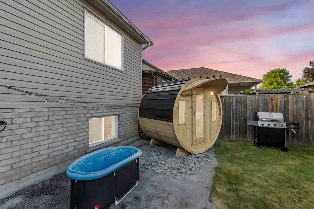 ⭐️PROPERTY HIGHLIGHTS⭐️ ► Modern & Stylish Home – the perfect stay for fun and relaxation! ► Prime LOCATION! 15 mins to Niagara Falls ► HOT TUB/ SAUNA / COLD PLUNGE ► Family Board Games ► Complementary: Coffee, Tea ► Sleeps 10 adults & 1 baby/toddler (crib +high chair) ► Fast WIFI & 75 INCH Smart TV ► Comfortable Memory Foam mattresses ► Dedicated work station and much much more! ⭐️ ‼️IMPORTANT‼️ ►There's 3-4 parking spots on the driveway. You may find additional parking on the street. ► The Living & dining room, kitchen are located on the main floor. ► The 3 bedroom are located on the First floor and the other two rooms on the main floor ⭐️BACKYARD ►The backyard is your personal oasis, designed for relaxation and fun. ✔Take a refreshing dip in the cold plunge or unwind in the 4-seater hot tub, sauna, perfect for relaxing after a day of adventure. ✔Enjoy outdoor games like corn hole, spike ball and dart with your loved ones, creating memories and friendly competition. ⭐️ LIVING ROOM ⭐️ So cozy, with lots of natural light, oversized comfy couch, overlooking beautiful bay windows. ✔ Oversized comfortable Sofa ✔ Throw blanket ✔ Beautiful Bay windows with lots of natural light ✔ 75” Smart TV ✔ Coffee Table ✔ Board games & Books ⭐️ DINING AREA ⭐️ ✔ Seats 6 people + 3 people bar table in the kitchen ⭐️ KITCHEN ⭐️ It is fully equipped and stocked with everything you need for the chef in the group. ✔ Bar Table seating 3 people ✔ Fully equipped ✔ Complementary coffee, tea ✔ Cooking essentials ✔ Microwave ✔ Stove ✔ Oven ✔ Refrigerator/Freezer ✔ Kettle ✔ Toaster ✔ Glasses ✔ Silverware ✔ Pots & Pans and much much more!! ⭐️ Games Room ⭐️ ➦Our games space is situated in the main floor room. ✔ Indoor Basketball ✔ Board Games ✔ Connect 4 ✔ Air Hockey ✔ Arcade Games ⭐️ MASTER BEDROOM 1 ⭐️ Sleeps 2, this bedroom features a luxurious queen-sized bed designed to ensure a restful night's sleep. The room is thoughtfully furnished to provide a serene and comfortable environment, allowing you to unwind and rejuvenate during your stay. ✔ Comfortable Memory Foam Mattress ✔ Queen–Size Bed with Pillows, Linens, and Sheets ✔ Work Station ✔ Room darkening shades ✔ Closet with Hangers and Shelf ✔ Pack n' Play ✔ Side tables with night lamps ⭐️ MASTER QUEEN BEDROOM 2 ⭐️ Sleeps 2, this bedroom features a luxurious queen-sized bed designed to ensure a restful night's sleep. The room is thoughtfully furnished to provide a serene and comfortable environment. The interior creates a calming atmosphere, promoting relaxation and tranquility. ✔ Comfortable Memory Foam Mattress ✔ Queen–Size Bed with Pillows, Linens, and Sheets ✔ Room darkening shades ✔ Closet with Hangers and Shelf ✔ Side tables with night lamps ⭐️ DOUBLE BEDROOM 3 ⭐️ Sleeps 2, this bedroom features a luxurious queen-sized bed designed to ensure a restful night's sleep. The blue-themed interior promotes relaxation and tranquility. ✔ Comfortable Memory Foam Mattress ✔ Double-sized Bed with Pillows, Linens, and Sheets ✔ Side Table ✔ Closet with Hangers and Shelf ⭐️ QUEEN BEDROOM 4 ⭐️ Sleeps 2, this bedroom features a luxurious queen-sized bed designed to ensure a restful night's sleep. The pink-themed interior promotes relaxation and tranquility. ✔ Comfortable Memory Foam Mattress ✔ Queen-sized Bed with Pillows, Linens, and Sheets ✔ Side Table ✔ Closet with Hangers and Shelf ⭐️ QUEEN BEDROOM 5 ⭐️ Sleeps 2, this bedroom features a luxurious bunk bed designed to ensure a restful night's sleep. ✔ Comfortable Memory Foam Mattress ✔ Double-sized Two Beds with Pillows, Linens, and Sheets ✔ Side Table ✔ Closet with Hangers and Shelf ⭐️ MASTER BATHROOM ⭐️ The House features a spacious ensuite full bathroom stocked with all necessities and essential toiletries including: ✔ Clawfoot Bathtub with a Shower ✔ Shampoo/Conditioner/Body Wash ✔ Hand soap ✔ Mirror ✔ Towel - body & face ✔ Essential Toiletries such as sanitary napkins, tampons ⭐️ BATHROOM ⭐️ The House features a spacious 2nd full bathroom stocked with all necessities and essential toiletries including: ✔ Clawfoot Bathtub with a Shower ✔ Shampoo/Conditioner/Body Wash ✔ Hand soap ✔ Mirror ✔ Towel - body & face ✔ Essential Toiletries