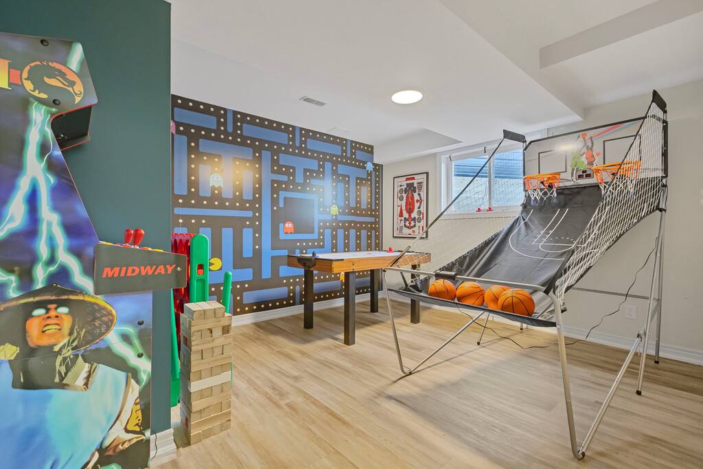 Relax and unwind in this bright, family-friendly home located in a quiet, safe neighborhood in the Niagara Region. Perfect for families or groups, this spacious retreat is packed with amenities to keep everyone entertained: ✔️ Private Hot Tub & Sauna ✔️ Game Room with Pac-Man Themed Wallpaper ✔️ Classic Arcade Games ✔️ Air Hockey & Indoor Basketball 📍 Just a 15-minute drive to Niagara Falls and Clifton Hills and close to local gems like Lock 7, Montebello Park, and Mountain Locks Park.