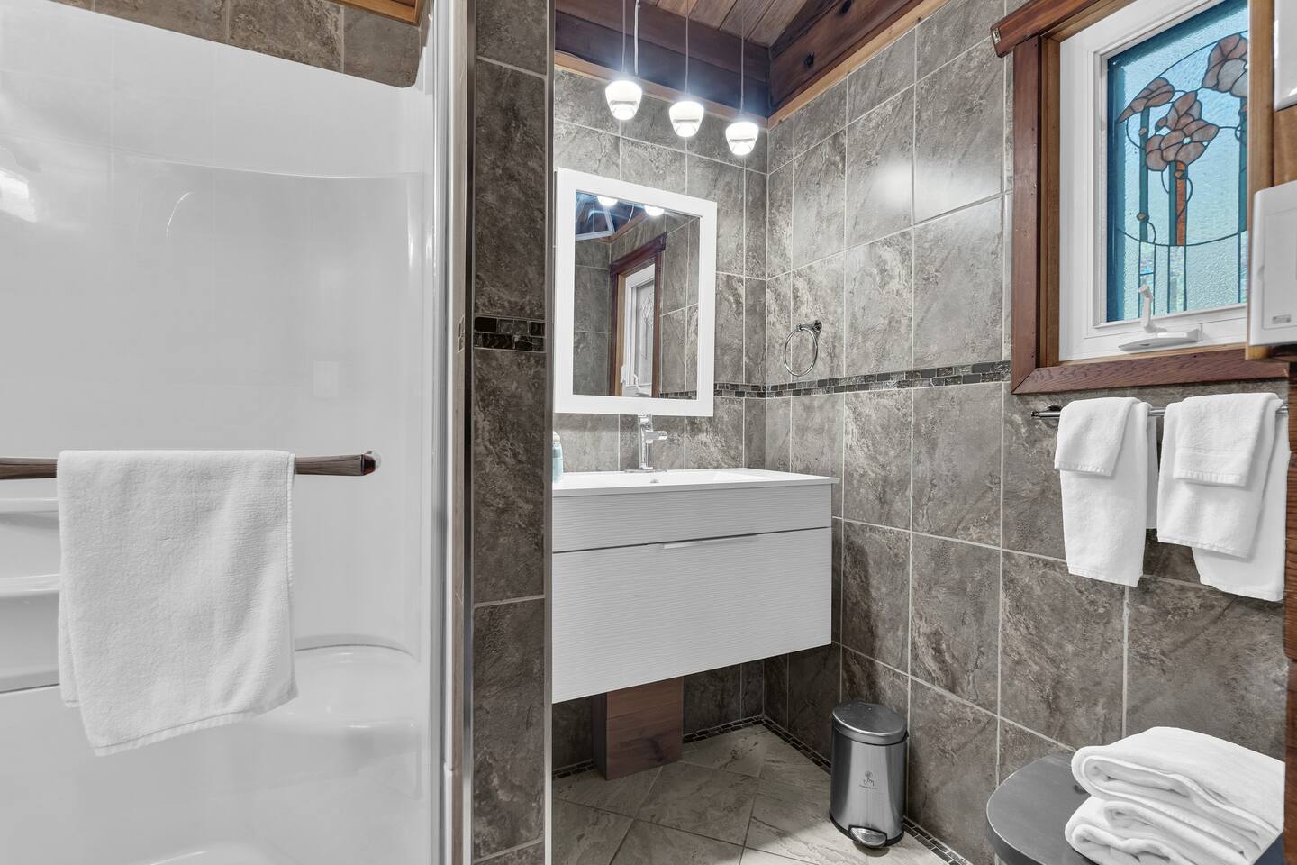 ⭐️PROPERTY HIGHLIGHTS⭐️ ► Modern & Stylish Home – the perfect stay for fun and relaxation! ► Prime LOCATION! ► HOT TUB ► Family Board Games ► Sleeps 8 adults ► Fast WIFI & 75 INCH Smart TV ► Comfortable mattresses ► Dedicated work station ⭐️BACKYARD ►Your private oasis, perfect for unwinding and enjoying the outdoors. ✔ Spacious 8-seater patio for outdoor dining and gatherings ✔ Relax in the hot tub or lounge in hammocks nestled among the trees ✔BBQ As evening falls, unwind on the cozy porch—perfect for soaking in the peaceful surroundings and enjoying meaningful moments with loved ones under the stars. This inviting space is your ideal spot to connect with nature, relax, and create lasting memories. ⭐️LIVING ROOM Step into the heart of the cottage—a warm, wood-accented living room designed for comfort and connection. Gather around the cozy indoor firepit, perfect for chilly evenings and sharing stories. Large windows frame breathtaking views of the surrounding nature, filling the space with natural light and a sense of calm. Whether you're curling up with a book or enjoying a glass of wine with loved ones, this space invites you to relax and feel at home. ⭐️KITCHEN & DINING ► The kitchen area is equipped with numerous cooking appliances. Everything you need to make yourself feel at home. If you want to take a break from the city hustle, then this is the place for you. Have some breakfast at the patio or indulge in a family dinner on the dining table. ⭐️MASTER BEDROOM ► Enjoy stunning views through high-ceiling windows that look out into the woods, where you can watch the sunrise filtering through the pines in complete privacy. Step onto the private patio to savor the fresh morning air from a cozy couch, or head to the backyard for a peaceful soak in the hot tub. Sleeps 2, Queen Bed The master bedroom offers: ✔ A luxurious bed mattress, dressed in soft cotton linens and a plush goose-down duvet. You’ll love every moment of cottage time here! ⭐️MASTER BATHROOM ► The apartment features a spacious full bathroom with a free standing tub, standing shower, and a makeup vanity, stocked with all necessities and essential toiletries, so you don't need to bring your own. ⭐️BEDROOM 2 ►The bedroom offers a cozy QUEEN-size bed, thoughtfully designed for a restful and rejuvenating sleep experience. This comfortable bed is dressed with soft, high-quality linens, smooth sheets, and supportive pillows, all carefully chosen to help you relax deeply and wake up refreshed. Sleeps 2 ⭐️BATHROOM 2 ►The apartment features a spacious full bathroom stocked with all necessities and essential toiletries, so you don't need to bring your own. ⭐️BEDROOM 3 ►The bedroom offers a cozy QUEEN-size bed, thoughtfully designed for a restful and rejuvenating sleep experience. This comfortable bed is dressed with soft, high-quality linens, smooth sheets, and supportive pillows, all carefully chosen to help you relax deeply and wake up refreshed. Sleeps 2 ⭐️BEDROOM 4 ►The bedroom offers a cozy QUEEN-size bed, thoughtfully designed for a restful and rejuvenating sleep experience. This comfortable bed is dressed with soft, high-quality linens, smooth sheets, and supportive pillows, all carefully chosen to help you relax deeply and wake up refreshed. Sleeps 2 ⭐️GAME ROOM ►Welcome to the ultimate gaming room with pool table, ping pong and foosball—designed for fun, relaxation, and connection! This inviting space features offers: ✔ Air hockey table for some friendly competition ✔Basketball for entertainment ✔Connect 4 for entertainment ⭐️THINGS TO DO⭐️ Cobourg offers the perfect mix of relaxation, nature, and small-town charm just minutes from the cottage. Spend your day soaking up the sun at Cobourg Beach, walking the scenic Waterfront Trail, or exploring peaceful forest trails and nearby conservation areas. The historic downtown is full of character, with boutique shops, local restaurants, and cozy cafés to discover. On Saturdays, don’t miss the Cobourg Farmers’ Market for fresh local produce, baked goods, and handmade crafts. Whether you're in the mood for outdoor adventure or a quiet day exploring, there's something for everyone nearby.