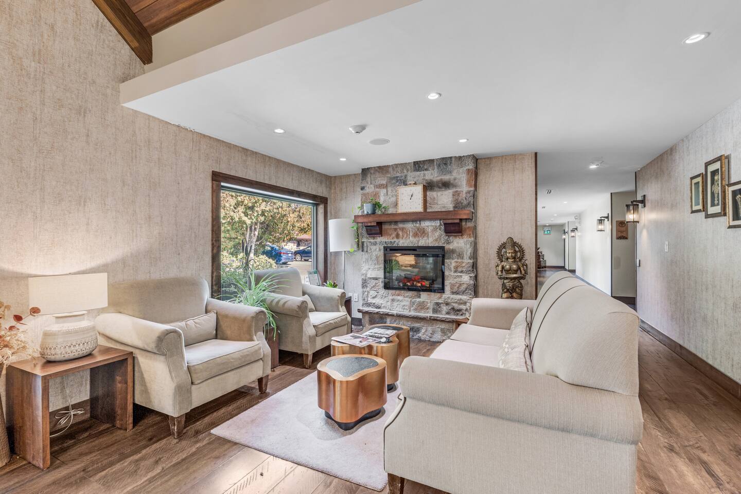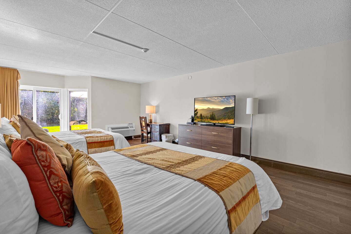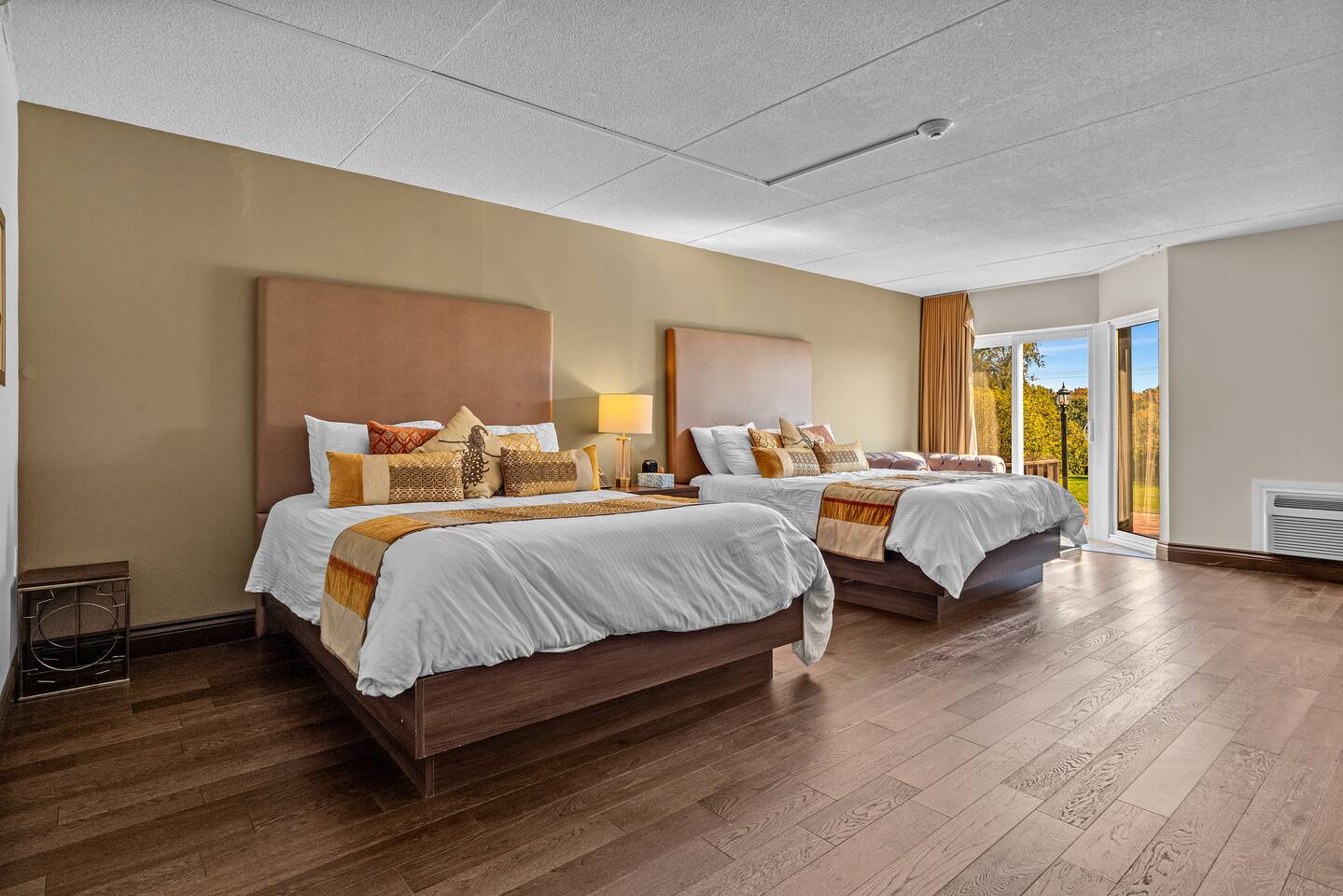 Enjoy resort-style amenities such as a soothing hot tub, cozy outdoor lounge, on-site restaurant, scenic walking trails, a peaceful pond, and plenty of natural surroundings to explore and unwind in. Welcome to your peaceful retreat at Northumberland Heights Wellness Retreat & Spa — the perfect blend of comfort, convenience, and relaxation. This spacious hotel room features two cozy queen beds, comfortably sleeping up to 4 guests, and includes a dedicated work desk for those needing a quiet space to focus. By booking this room, you’ll enjoy complimentary access to resort-style amenities, including: ✨ A relaxing hot tub ✨ Invigorating sauna ✨ 24/7 front desk check-in for flexible arrival ✨ Free tea and coffee throughout your stay ✨ Complimentary parking in our on-site lot To make your stay even more comfortable, we provide a complimentary starter kit that includes: ✅ Fresh bath towels, hand towels, and washcloths ✅ Body wash, shampoo, conditioner, and hand soap ✅ Kitchen towels and 3 rolls of toilet paper Whether you're visiting for a wellness getaway, a weekend escape, or a peaceful work trip, this room offers everything you need to relax and recharge. Nestled in the heart of nature with access to walking trails, spa services, and more — your retreat begins here.