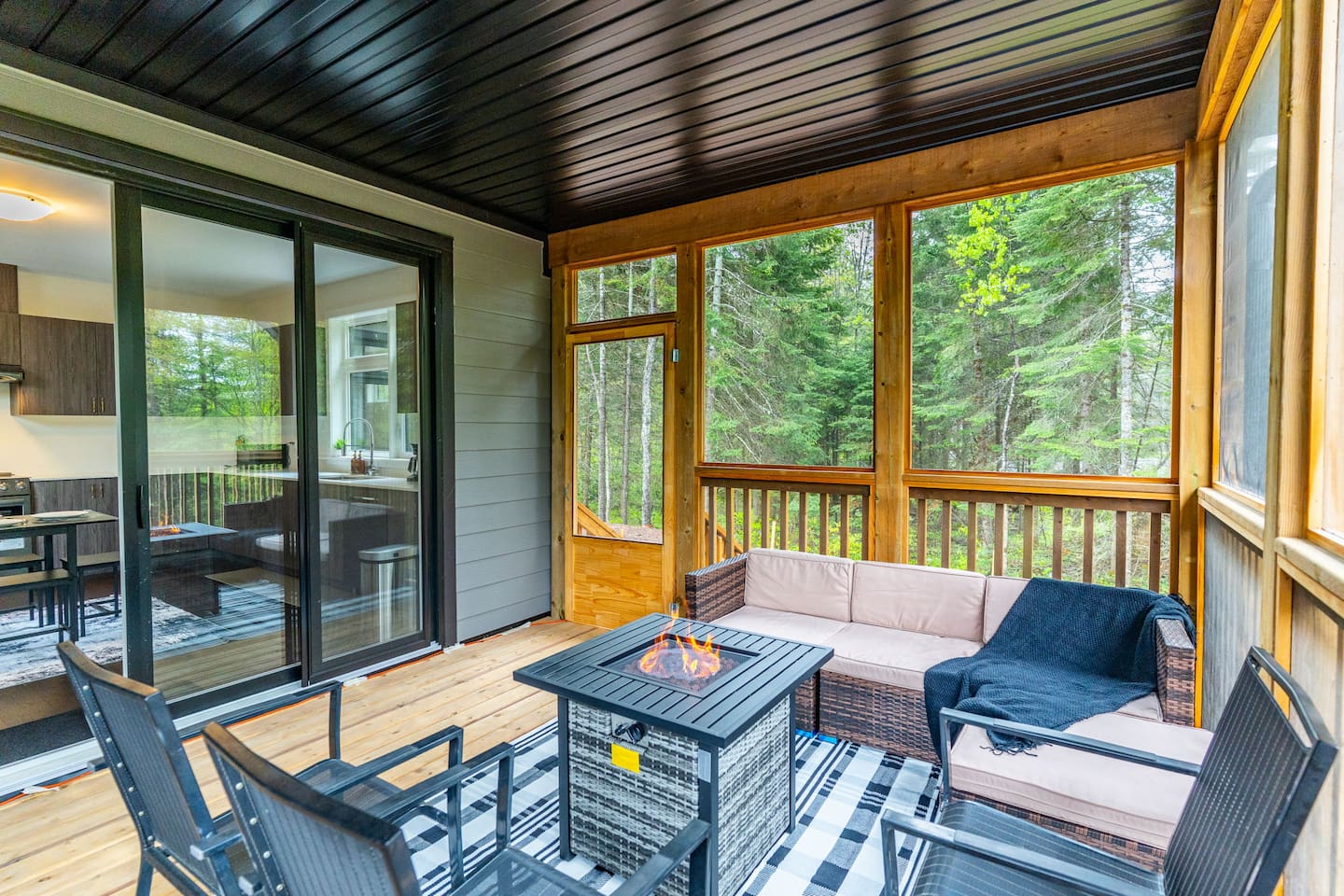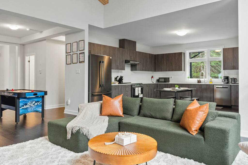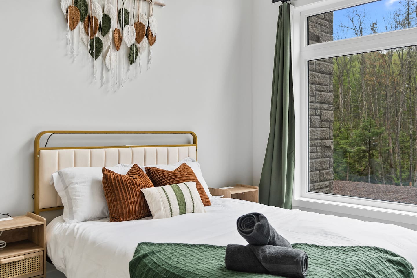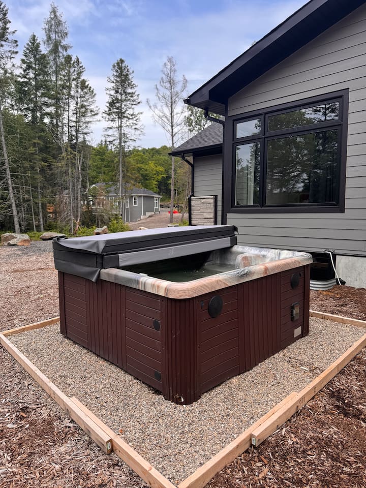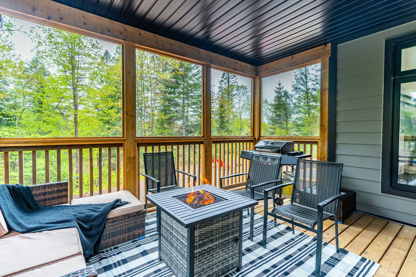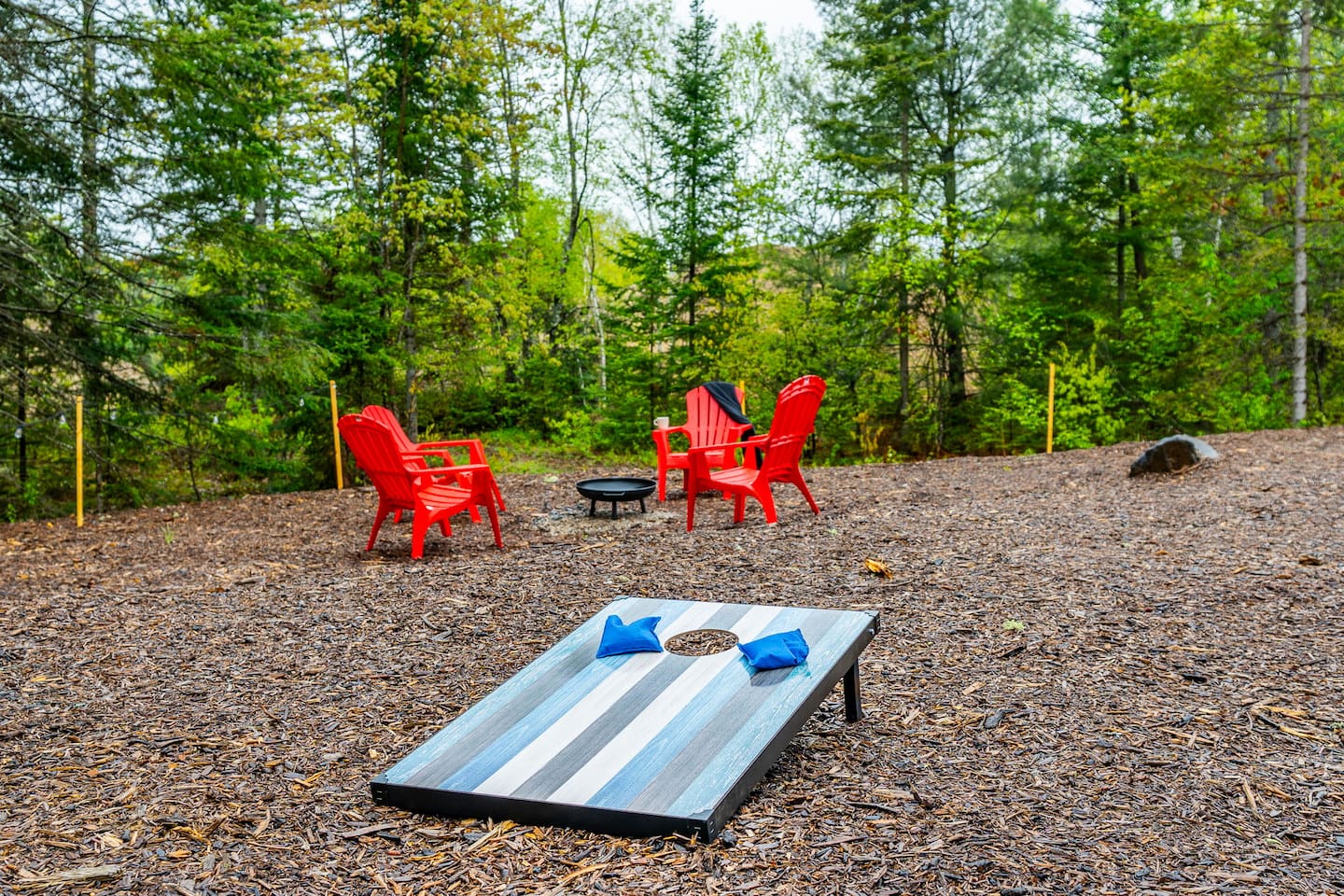 The backyard is your go-to space for reconnecting with nature and spending quality time with loved ones. ✔ Unwind in the 4-seater HOT TUB, perfect for relaxing after a day of adventure. ⭐️ LIVING ROOM ► Built in 2024, this open-concept cottage features soaring vaulted ceilings and floor-to-ceiling windows, flooding the space with natural light and views of the pines. ✔ Stylish boutique-style décor for a cozy, modern vibe ✔ Leather sofa with plush pillows and throws ✔ Oversized basket chair—great for couples ✔ 60” 4K Ultra HD Smart TV for movie nights ⭐️ KITCHEN & DINING ► The fully equipped kitchen comes with everything you need to whip up home-cooked meals or enjoy a quiet breakfast on the patio. ✔ All essential cooking appliances provided ✔ Dining table for family meals ✔ Patio seating for sunny breakfasts ✔ Classic table tennis for a dose of fun ⭐️ MASTER BEDROOM ► Wake up to sunlight streaming through tall windows overlooking the forest. Step out to your private patio or enjoy the hot tub just steps away. Sleeps 2. ✔ KING-size ENDY mattress with soft cotton linens and goose-down duvet ✔ Crib available for little ones ✔ Vanity station in the room ✔ Pillows include a mix of shredded microfiber and goose-down ⭐️ MASTER BATHROOM ► Spacious and spa-like, featuring: ✔ Free-standing tub ✔ Standing shower ✔ Makeup vanity ✔ Essentials and toiletries provided ⭐️ BEDROOM 2 ► Cozy and calming with a QUEEN-size bed, perfect for a restful night’s sleep. Sleeps 2. ✔ High-quality linens, soft sheets, and supportive pillows ⭐️ BATHROOM 2 ► Second full bathroom, fully stocked with fresh towels and all essentials—just bring yourself! ⭐️ GAME ROOM ► Step into a Mario-themed fun zone built for laughs, games, and good times. ✔ Foosball table and Connect 4 ✔ Pullout couch (sleeps 2) ✔ A collection of board games ✔ Cozy theater-style lighting and strip lights ⭐️ MUSKOKA ROOM ► A cozy retreat for relaxing year-round with views of nature all around. ✔ Spacious 6-seater sectional couch ✔ Electric fire pit for warmth and ambiance ✔ Magical fairy lights ✔ 3-burner BBQ for delicious meals ⭐️ THINGS TO DO ⭐️ Winter Activities: ✔ Skiing ✔ Snowboarding ✔ Snowshoeing ✔ Snowmobiling (Just 10 minutes from Hidden Valley Ski Resort!) ⭐️ Spring, Summer & Fall Activities: ✔ Biking ✔ Hiking ✔ Rock climbing ✔ Golf ✔ Horseback riding ✔ Local microbreweries Nearby Parks: ✔ Limberlost Forest & Wildlife Reserve ✔ Arrowhead Provincial Park ✔ Algonquin Provincial Park (15–20 minutes away) More Nearby Attractions: ✔ Deerhurst Resort (10 mins) ✔ Dorset Lookout Tower (10 mins) ✔ Downtown Huntsville (15 mins) Water Activities: ✔ Canoeing, kayaking, motorized water sports – all within 10 minutes Local Charm: ✔ Seasonal farmers markets, local events, and more just around the corner!
