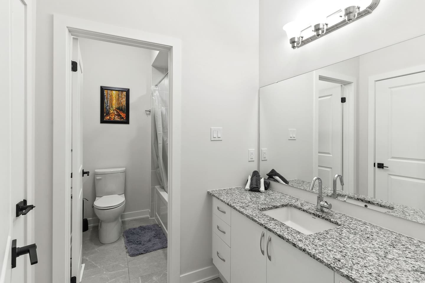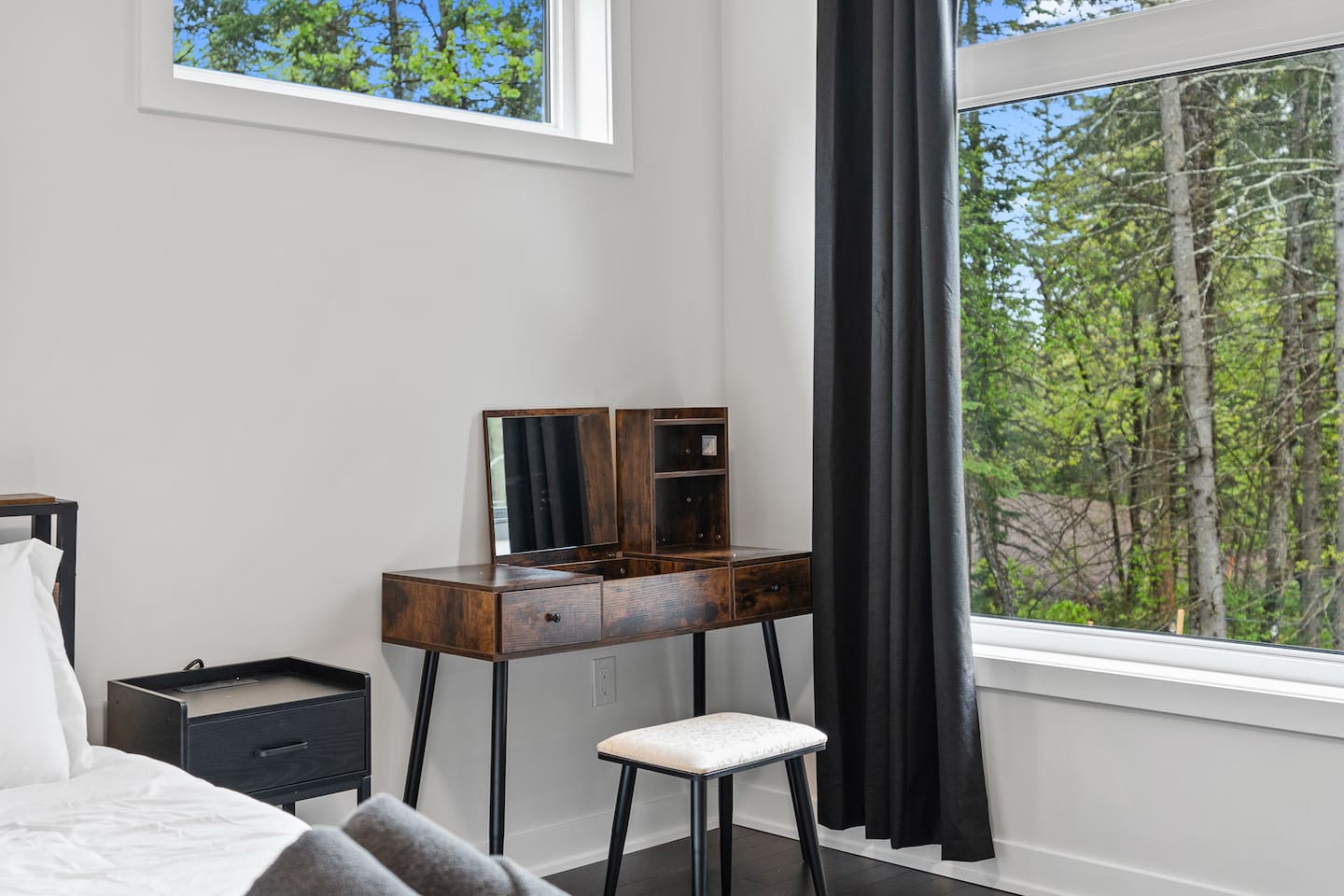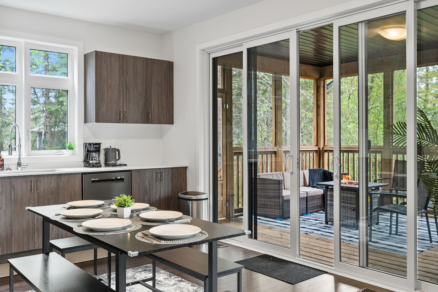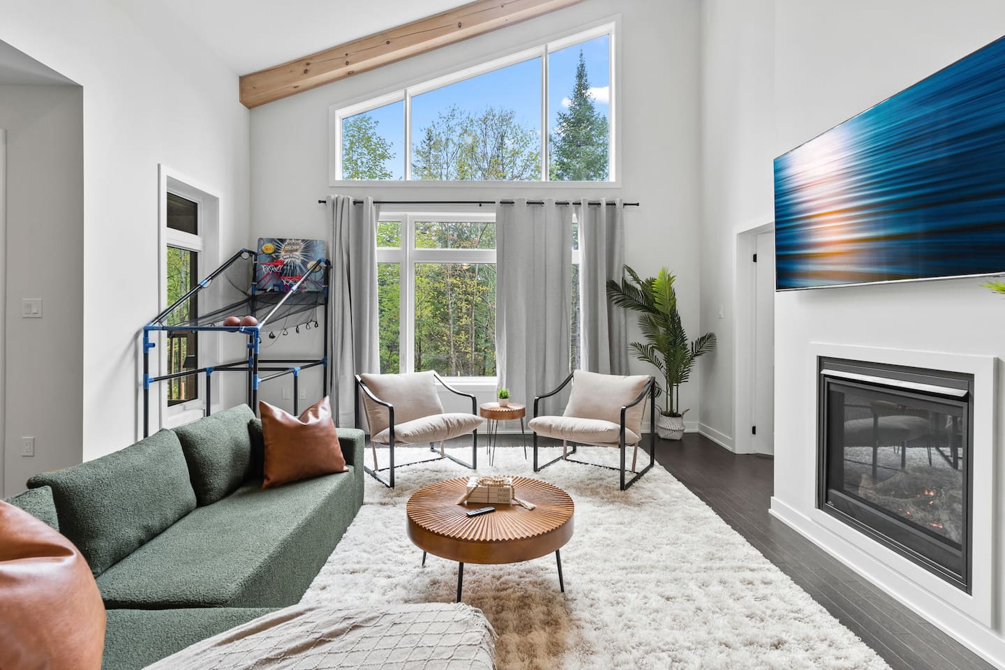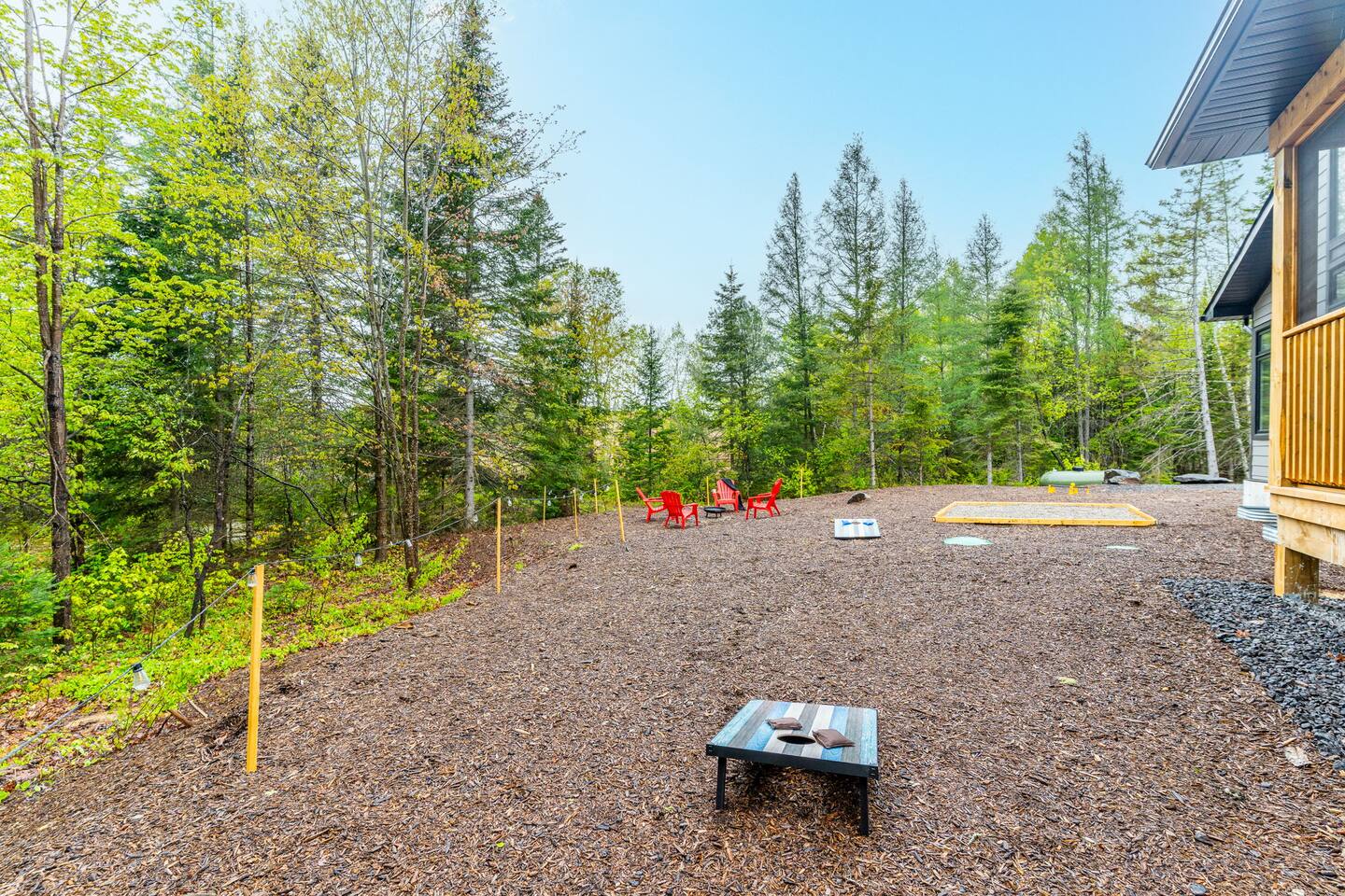 The backyard is your go-to space for reconnecting with nature and spending quality time with loved ones. ✔ Unwind in the 4-seater HOT TUB, perfect for relaxing after a day of adventure. ⭐️ LIVING ROOM ► Built in 2024, this open-concept cottage features soaring vaulted ceilings and floor-to-ceiling windows, flooding the space with natural light and views of the pines. ✔ Stylish boutique-style décor for a cozy, modern vibe ✔ Leather sofa with plush pillows and throws ✔ Oversized basket chair—great for couples ✔ 60” 4K Ultra HD Smart TV for movie nights ⭐️ KITCHEN & DINING ► The fully equipped kitchen comes with everything you need to whip up home-cooked meals or enjoy a quiet breakfast on the patio. ✔ All essential cooking appliances provided ✔ Dining table for family meals ✔ Patio seating for sunny breakfasts ✔ Classic table tennis for a dose of fun ⭐️ MASTER BEDROOM ► Wake up to sunlight streaming through tall windows overlooking the forest. Step out to your private patio or enjoy the hot tub just steps away. Sleeps 2. ✔ KING-size ENDY mattress with soft cotton linens and goose-down duvet ✔ Crib available for little ones ✔ Vanity station in the room ✔ Pillows include a mix of shredded microfiber and goose-down ⭐️ MASTER BATHROOM ► Spacious and spa-like, featuring: ✔ Free-standing tub ✔ Standing shower ✔ Makeup vanity ✔ Essentials and toiletries provided ⭐️ BEDROOM 2 ► Cozy and calming with a QUEEN-size bed, perfect for a restful night’s sleep. Sleeps 2. ✔ High-quality linens, soft sheets, and supportive pillows ⭐️ BATHROOM 2 ► Second full bathroom, fully stocked with fresh towels and all essentials—just bring yourself! ⭐️ GAME ROOM ► Step into a Mario-themed fun zone built for laughs, games, and good times. ✔ Foosball table and Connect 4 ✔ Pullout couch (sleeps 2) ✔ A collection of board games ✔ Cozy theater-style lighting and strip lights ⭐️ MUSKOKA ROOM ► A cozy retreat for relaxing year-round with views of nature all around. ✔ Spacious 6-seater sectional couch ✔ Electric fire pit for warmth and ambiance ✔ Magical fairy lights ✔ 3-burner BBQ for delicious meals ⭐️ THINGS TO DO ⭐️ Winter Activities: ✔ Skiing ✔ Snowboarding ✔ Snowshoeing ✔ Snowmobiling (Just 10 minutes from Hidden Valley Ski Resort!) ⭐️ Spring, Summer & Fall Activities: ✔ Biking ✔ Hiking ✔ Rock climbing ✔ Golf ✔ Horseback riding ✔ Local microbreweries Nearby Parks: ✔ Limberlost Forest & Wildlife Reserve ✔ Arrowhead Provincial Park ✔ Algonquin Provincial Park (15–20 minutes away) More Nearby Attractions: ✔ Deerhurst Resort (10 mins) ✔ Dorset Lookout Tower (10 mins) ✔ Downtown Huntsville (15 mins) Water Activities: ✔ Canoeing, kayaking, motorized water sports – all within 10 minutes Local Charm: ✔ Seasonal farmers markets, local events, and more just around the corner!